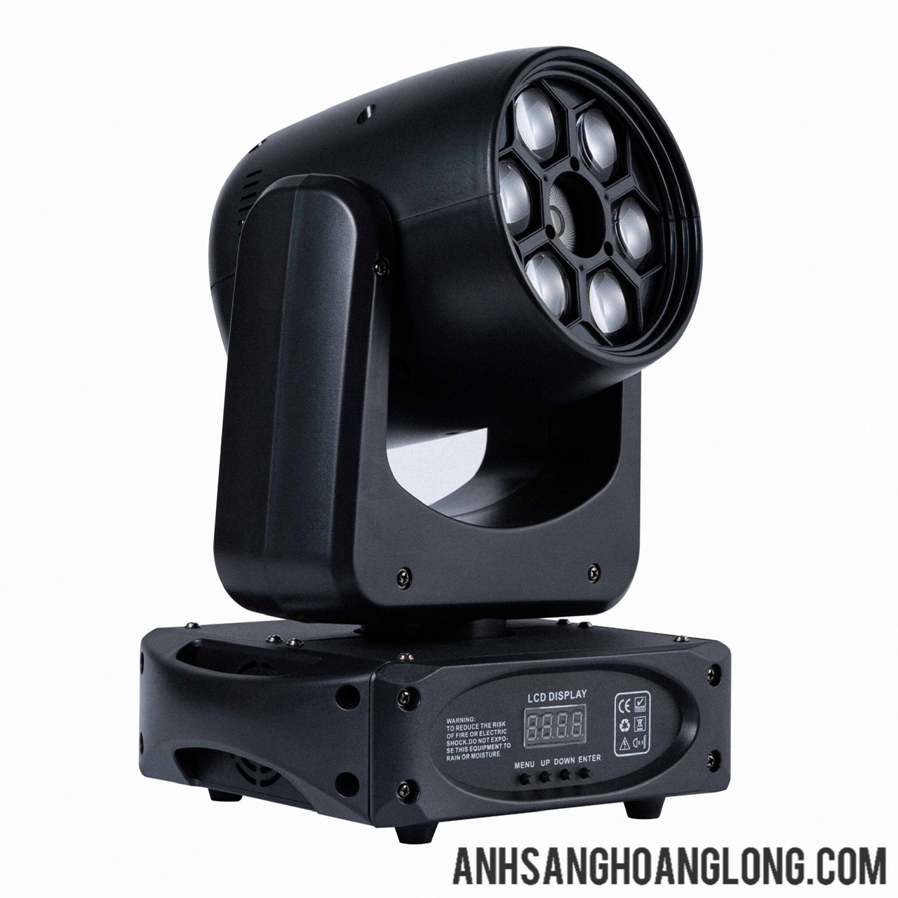 Đèn Moving 6 Mắt Có Laser có góc quay ngang được 540 độ, quay dọc được 270 độ giúp cho đèn có độ bao phủ ánh sáng rộng, còn một sự khác biệt nữa đèn có thể chụm ra chụm vào được 6 nguồn sáng led;