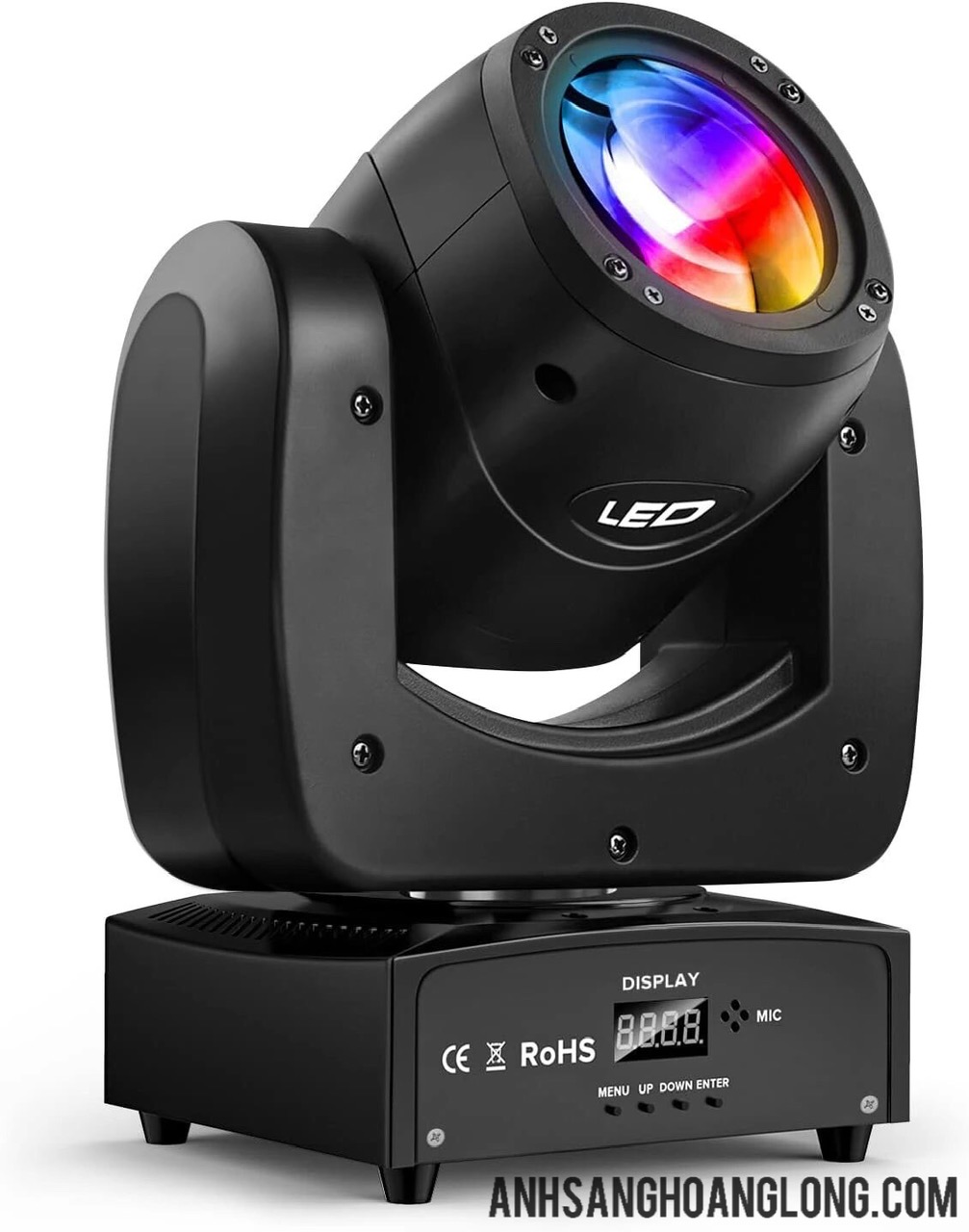 Moving 120w Gobo. Thông số cơ bản: kích thước nhỏ gọn, dễ dàng lắp đặt; luồng sáng mạnh, có chế độ 1 luồng tia Beam và chế độ nhân hình sử dụng lăng kính 8 mặt, Giá rẻ, phù hợp cho Bar, Karaoke, sân khấu vừa và nhỏ…;
