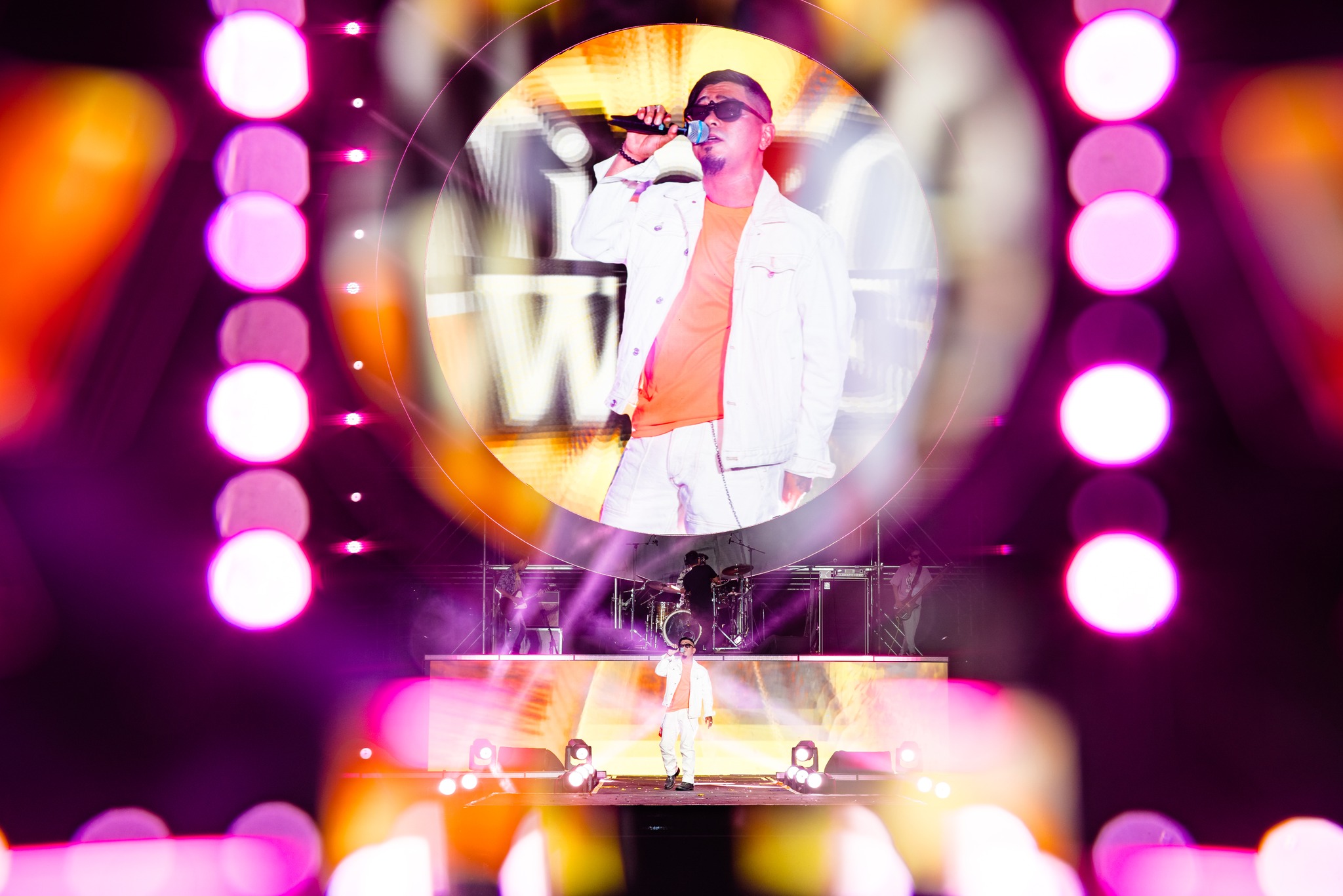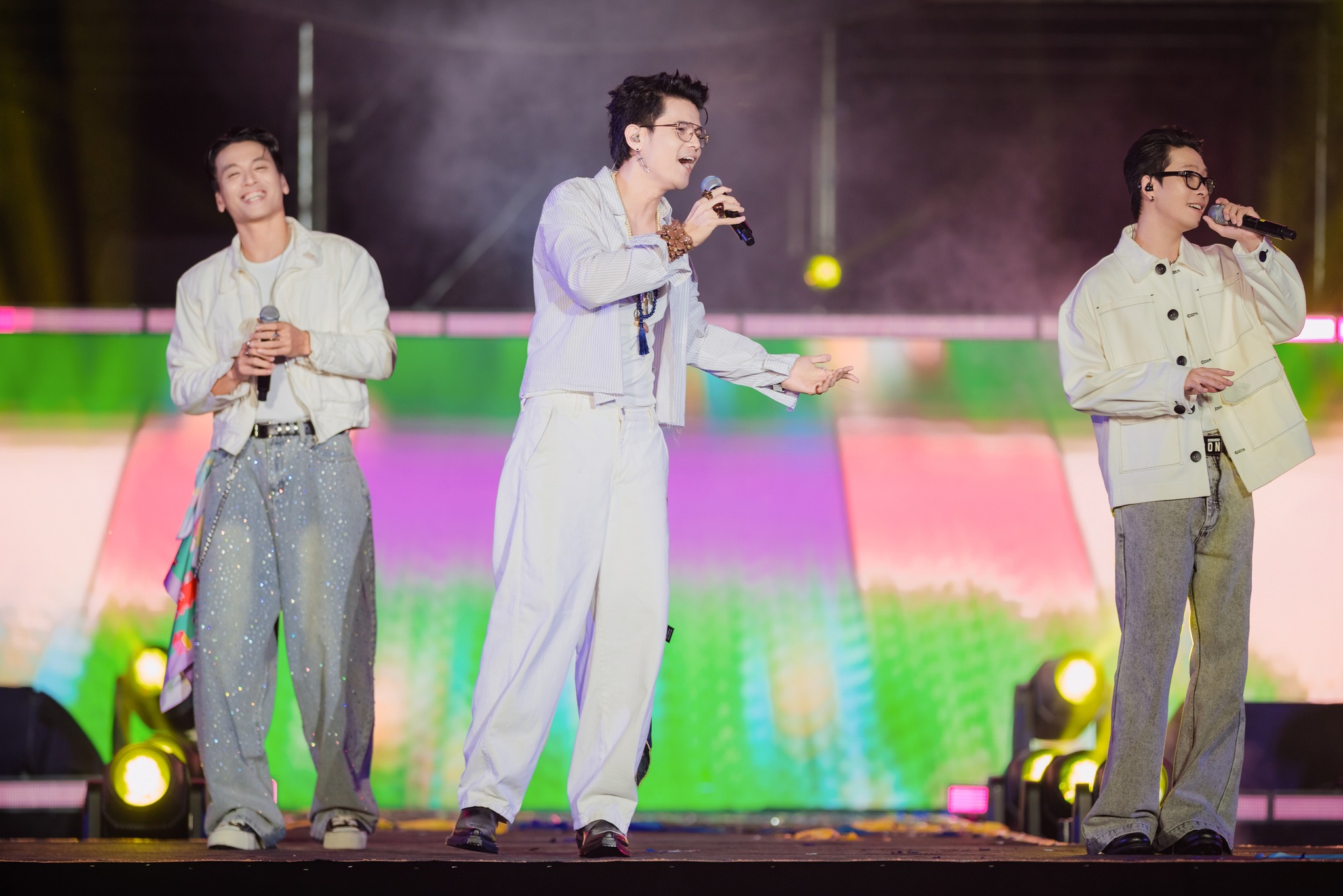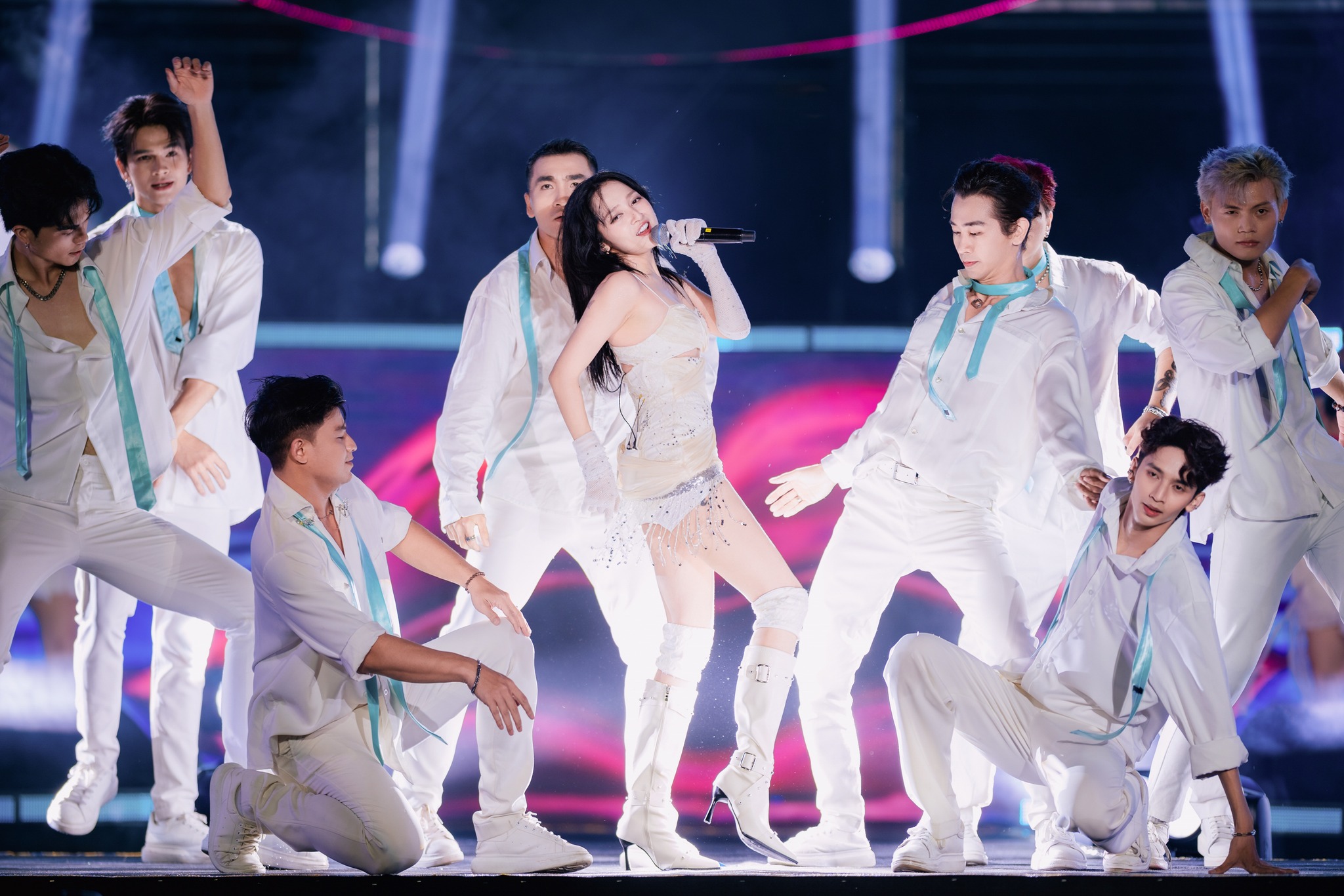 Thiết kế sân khấu đa tầng, kết hợp với các đường line LED viền và hiệu ứng khói, đã mang đến một không gian trình diễn đẳng cấp cho dàn sao hàng đầu.