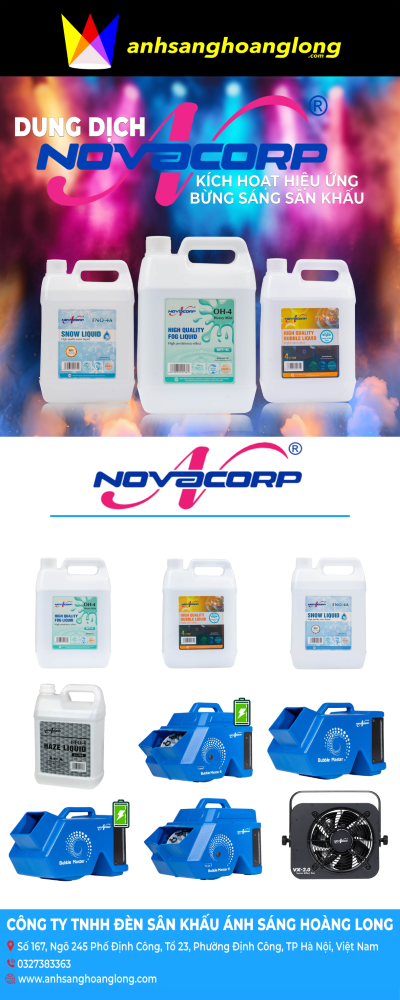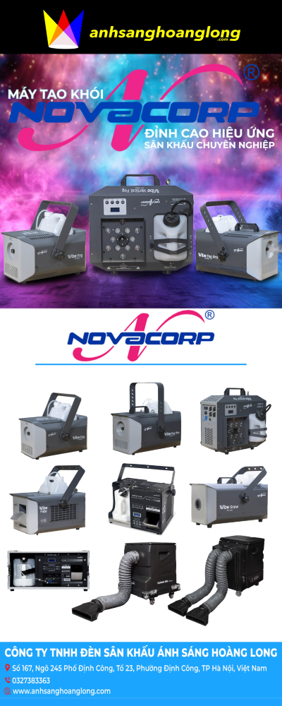 Mở đầu cho chuỗi sản phẩm ấn tượng là Novacorp - thương hiệu chuyên về thiết bị hiệu ứng sân khấu mà Ánh Sáng Hoàng Long vinh dự là nhà phân phối độc quyền tại thị trường Việt Nam.