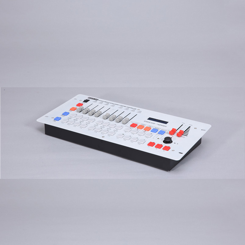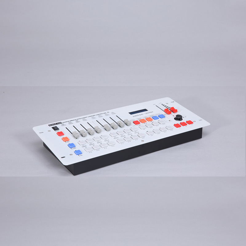 Bàn điều khiển ánh sáng disco là loại thiết bị điều khiển ánh sáng cao cấp hơn loại bàn điều khiển dmx 512. Bàn điều khiển disco 240 là dòng bàn được dùng rất nhiều trên sân khấu hiện nay. Bàn điều khiển disco 240 giúp người kỹ thuật viên ánh sáng điều chỉnh các dòng đèn sân khấu chiếu ra những cảnh sáng theo ý của mình. Bàn điều khiển disco 240 giá rẻ Bàn điều khiển ánh sáng disco 240 có kích thước nhỏ gọn 483x187x80mm, trọng lượng chỉ nặng hơn 3,5kg tuy nhiên dù nhỏ gọn nhưng các tính năng điều khiển không hề nhỏ nhé. Bàn điều khiển lưu được 240 cảnh sáng, điều khiển độc lập được 12 nhóm đèn sân khấu như các loại đèn laser sân khấu, đèn par led, đèn led sân khấu…..