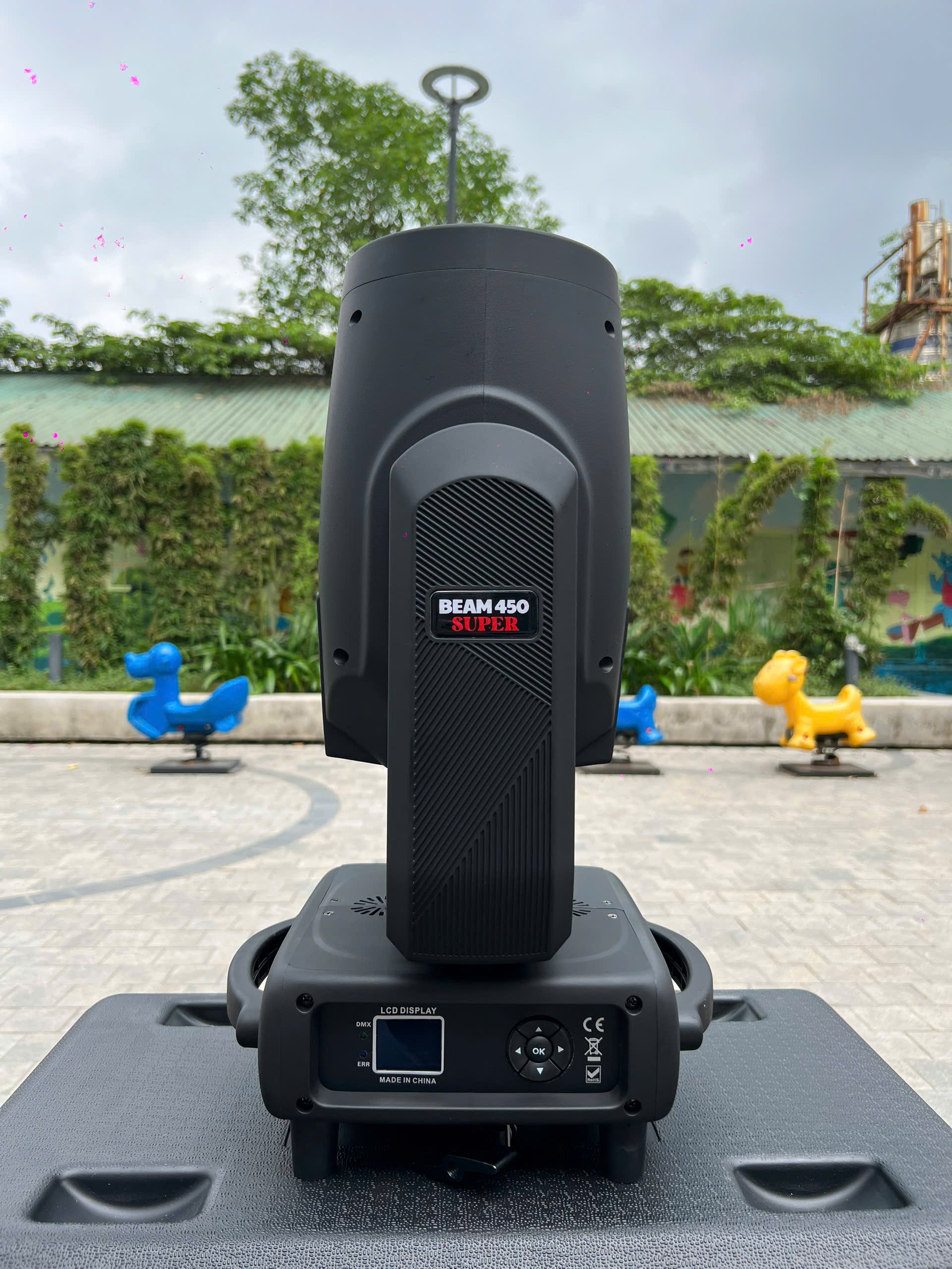 Đèn Beam 450 Super là dòng sản phẩm được thiết kế để phục vụ các sân khấu quy mô lớn, hội trường chuyên nghiệp, bar – club, hoặc sự kiện ngoài trời. Được trang bị bóng Phoenix 300W, công suất tổng đạt 450W, mẫu đèn này mang lại luồng sáng mạnh mẽ lên tới 7950lm với nhiệt độ màu 8500K, sắc nét và rực rỡ trong mọi điều kiện trình chiếu.