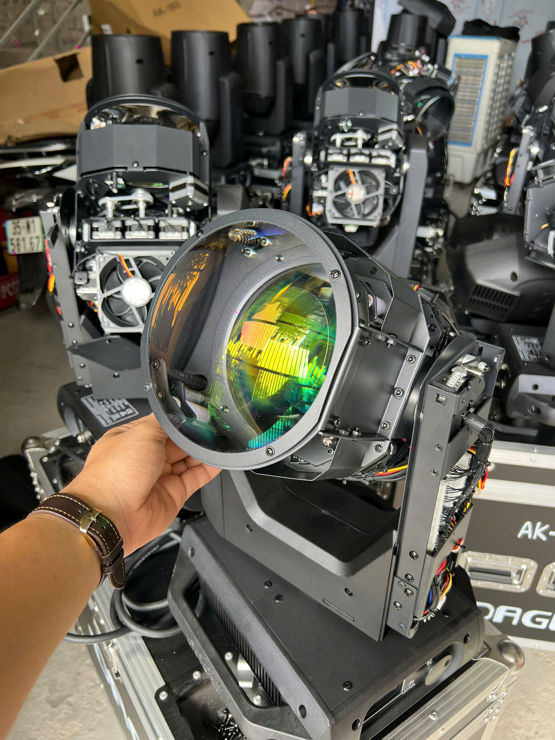 Trước khi xuất kho, toàn bộ 20 cây Beam AK-580 đều được đội ngũ kỹ thuật của chúng tôi kiểm tra toàn diện. Từ việc test các chức năng Pan/Tilt, kiểm tra bánh xe màu, bánh xe gobo, hiệu ứng prism cho đến việc đảm bảo mọi kết nối đều hoạt động ổn định. Mỗi chiếc đèn được đóng gói cẩn thận trong thùng chuyên dụng, có lót xốp chống sốc, đảm bảo an toàn tuyệt đối trong suốt quá trình vận chuyển đường dài ra Hà Nội.