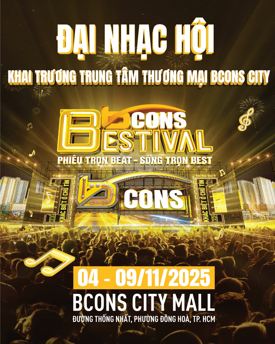 Một "cơn địa chấn" âm nhạc sắp đổ bộ vào TP.HCM, hứa hẹn sẽ là tâm điểm của mọi cuộc vui trong tháng 11. Với tên gọi BCONS BESTIVAL 2025, tuần lễ đại nhạc hội này không chỉ là một sự kiện, mà là một tuyên ngôn về năng lượng tuổi trẻ, diễn ra liên tục trong 6 đêm để chào mừng sự ra mắt của Bcons City Mall. Điều tuyệt vời nhất? Vé vào cổng hoàn toàn miễn phí!