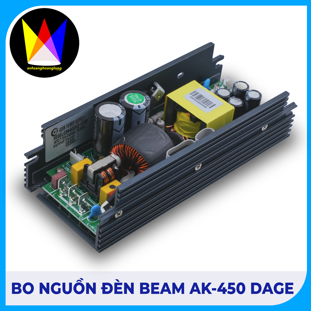 Bo nguồn đèn Beam AK-450 là bộ nguồn tích hợp đa điện áp, được thiết kế chuyên dụng cho dòng đèn Beam 450W thương hiệu DAGE. Thiết bị đóng vai trò cung cấp và ổn định điện áp đầu ra cho các thành phần quan trọng như bóng đèn, bo kích, bo mạch xử lý hiệu ứng ánh sáng.