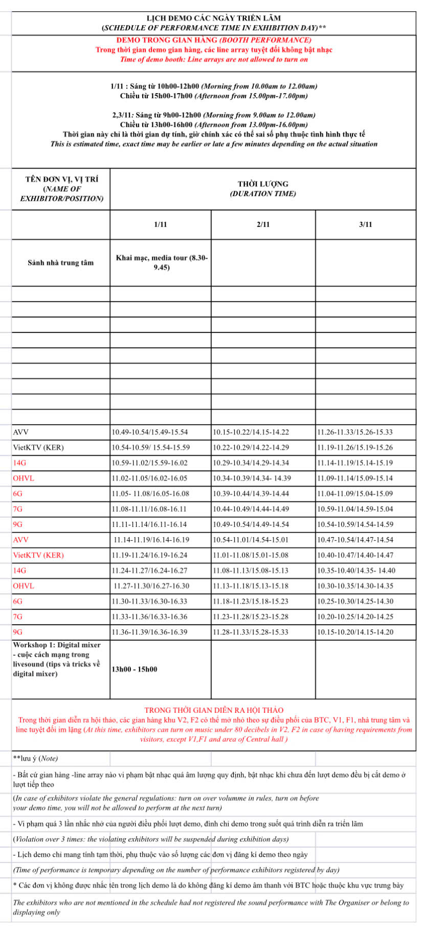 Thời gian tổ chức: Sự kiện sẽ diễn ra trong 3 ngày, từ Thứ Sáu (01/11/2025) đến Chủ Nhật (03/11/2025).