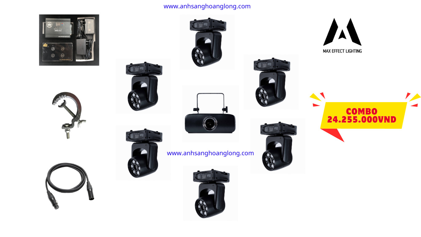 2, Đèn moving 6 Mắt Có Laser 6 Chiếc