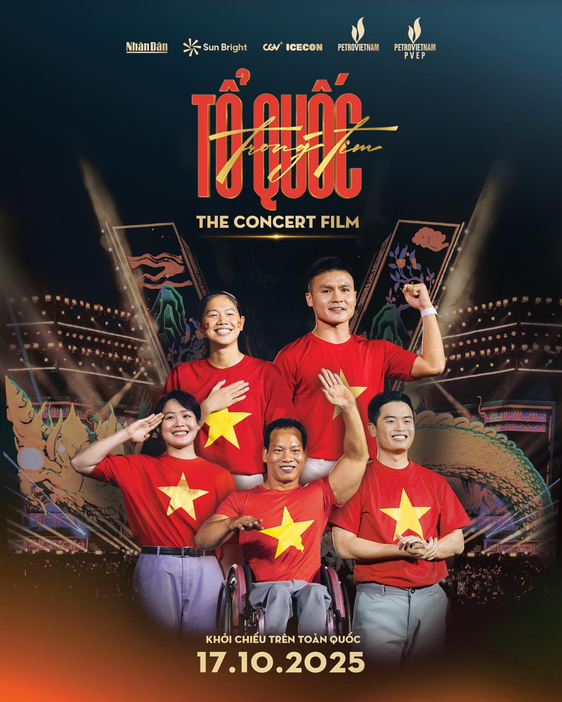Thời khắc được mong đợi nhất đã đến rất gần. "Tổ Quốc Trong Tim: The Concert Film" sẽ chính thức ra rạp vào ngày 17.10.2025. Tuy nhiên, theo thông tin mới nhất từ nhà phát hành, bộ phim sẽ được công chiếu với số lượng suất chiếu giới hạn, độc quyền tại các cụm rạp CGV trên toàn quốc. Đây là lời kêu gọi khẩn trương dành cho những ai không muốn bỏ lỡ sự kiện điện ảnh đặc biệt này.