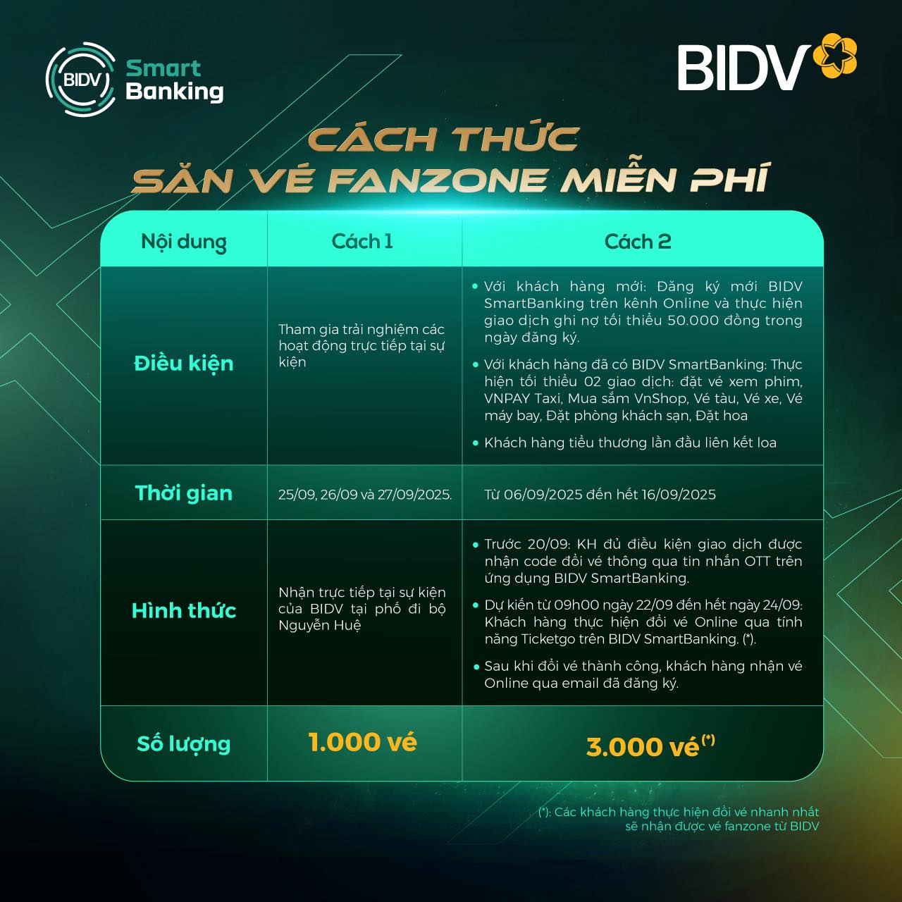 Theo thông tin từ ban tổ chức, vé tham dự khu vực Fanzone của BIDV Music Festival Emerald X sẽ được phát miễn phí. Thông tin chi tiết về cách thức và thời gian nhận vé sẽ sớm được cập nhật trên trang fanpage chính thức của BIDV trong thời gian tới. Hãy cùng theo dõi và đừng bỏ lỡ cơ hội hòa mình vào không gian âm nhạc đỉnh cao này.