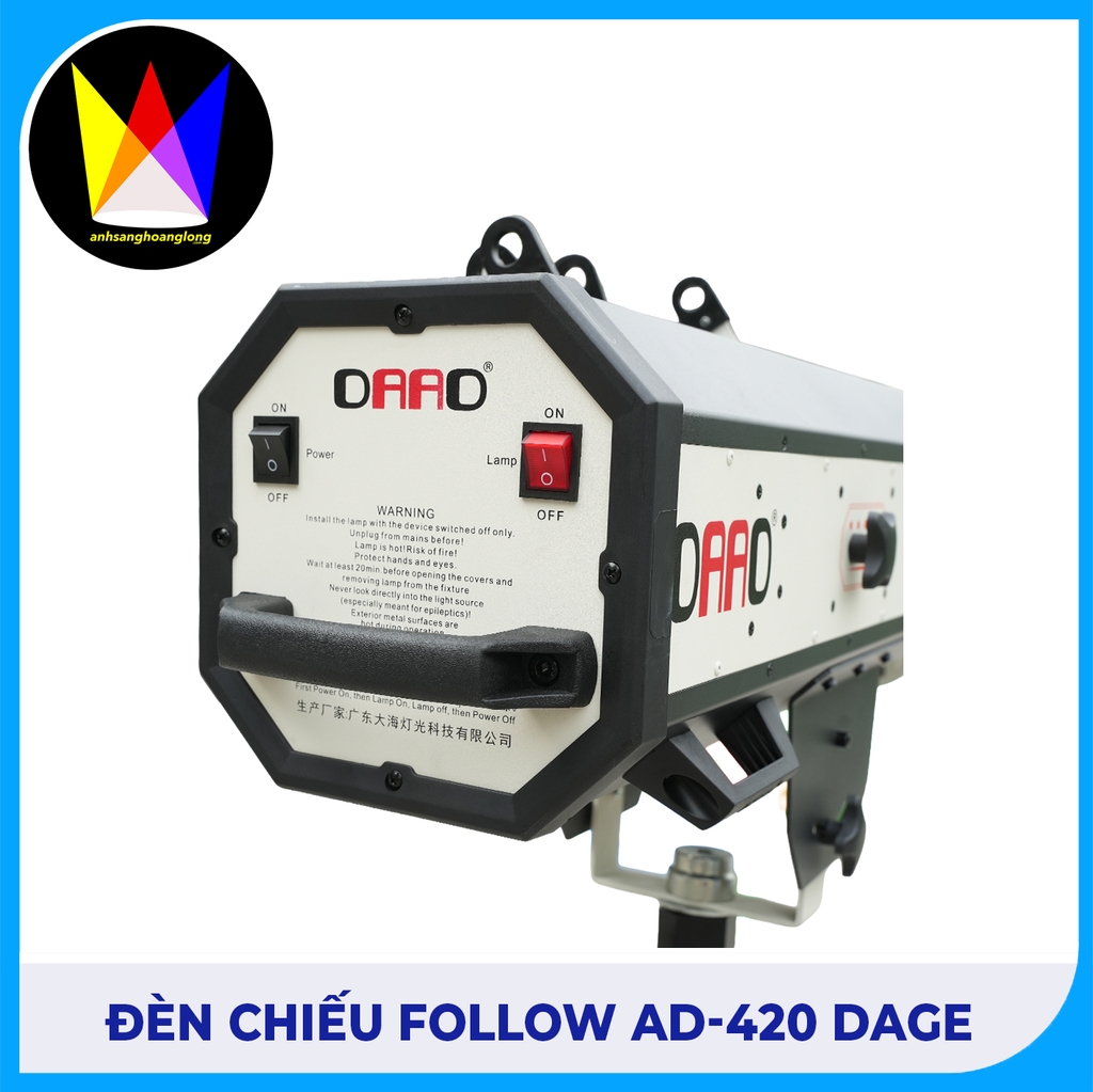 Đèn chiếu Follow AD-420 là sản phẩm cao cấp đến từ thương hiệu DAGE, chuyên dùng trong các sự kiện sân khấu chuyên nghiệp, hội trường, nhà hát, chương trình biểu diễn... Sở hữu nguồn sáng mạnh mẽ OSRAM 420W, hệ quang học chính xác, cùng các tính năng điều chỉnh linh hoạt về màu sắc, độ sáng, đèn chiếu Follow AD-420 mang lại hiệu quả trình diễn tối ưu và độ bền vượt trội.
