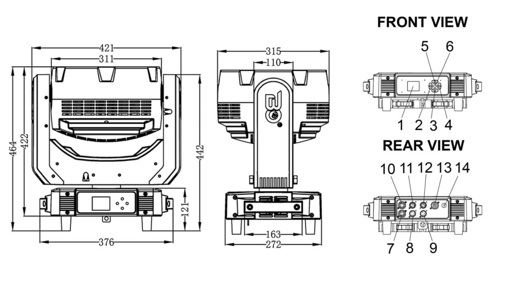 Kênh DMX: 12 / 17 / 21 / 22 / 27 / 30 kênh linh hoạt.