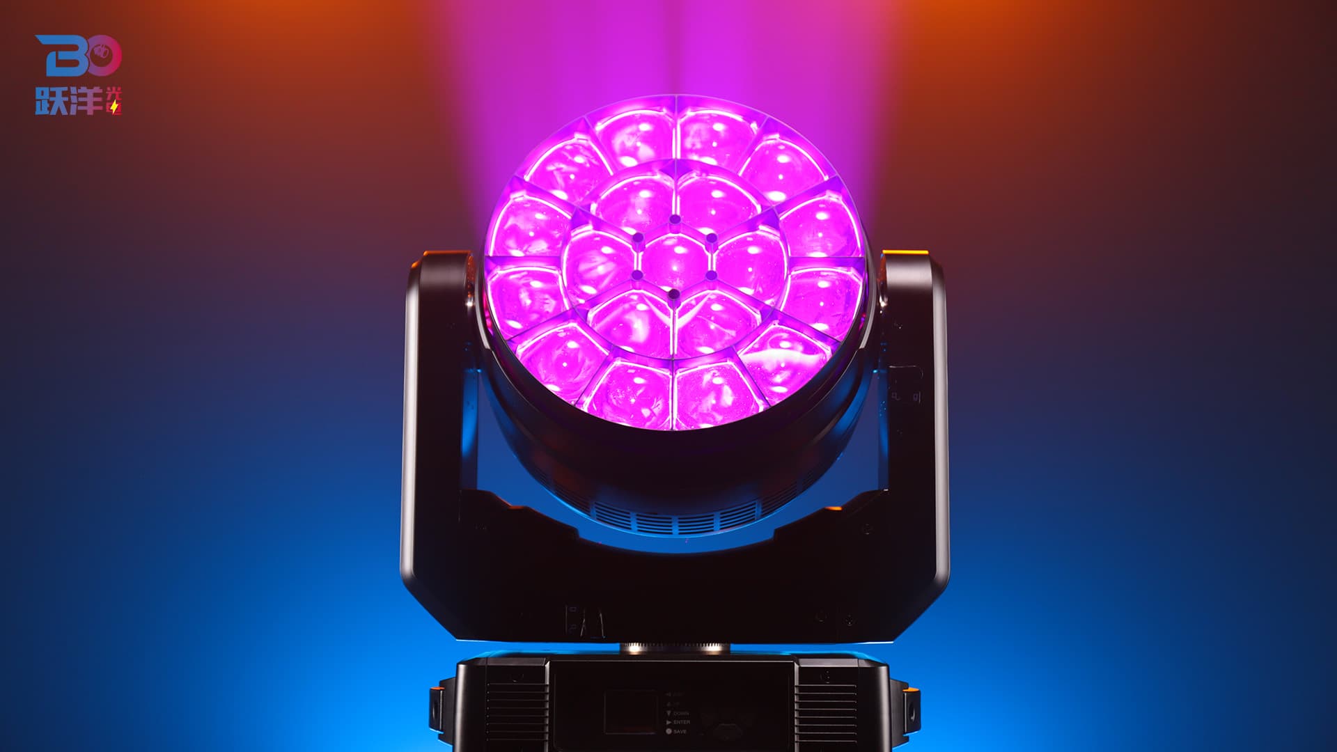Từ beam laser-like mạnh mẽ đến wash mềm mại phủ rộng, tất cả đều có trong Đèn Moving 19x60W RGBW WASH Zoom – BO Lighting.