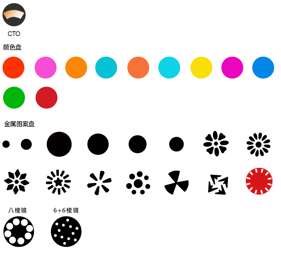 Gobo kim loại: Trắng + 12 gobo + 1 gobo hiệu ứng kính