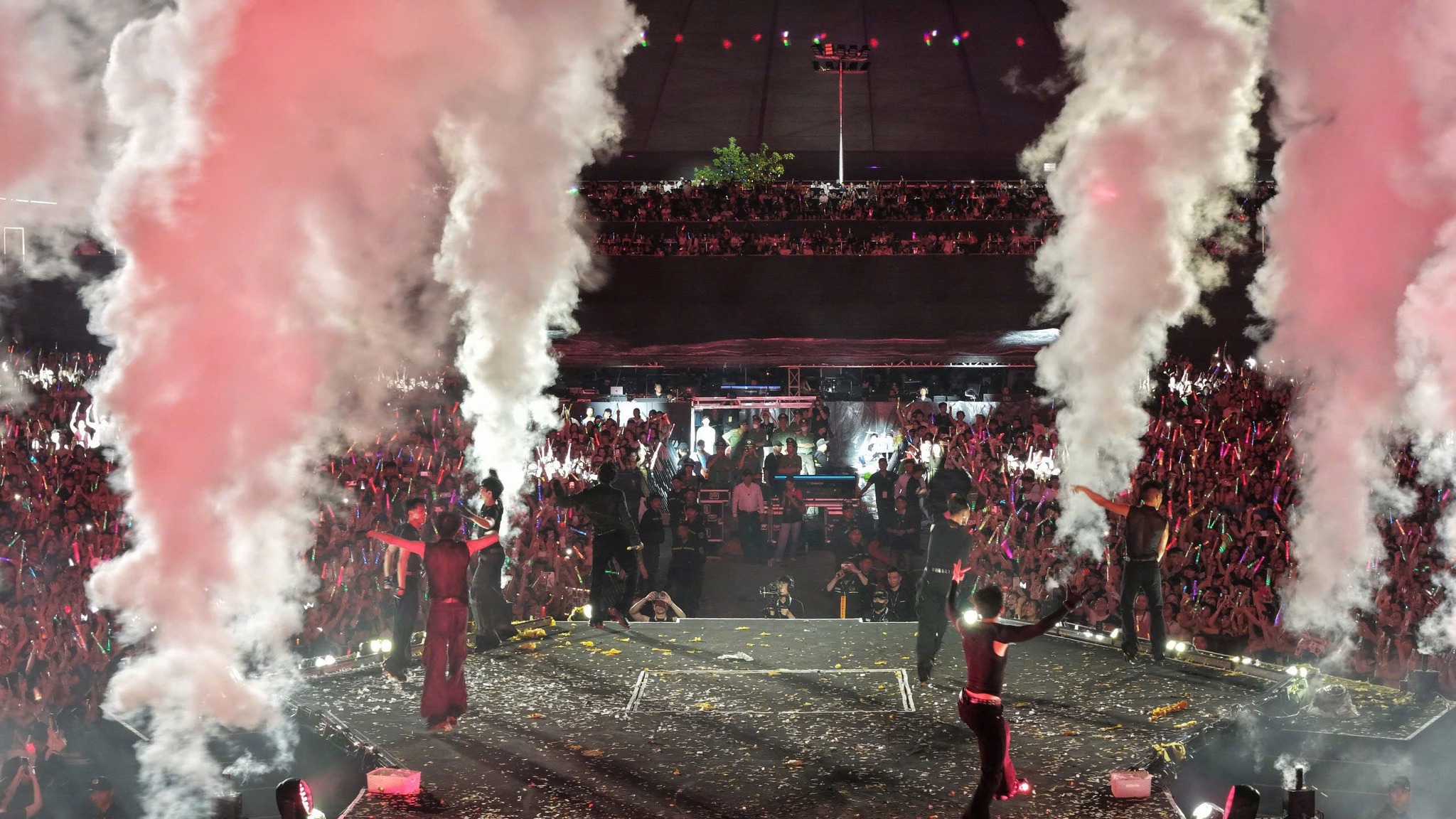 Không gian sân khấu lúc này đòi hỏi một hệ thống ánh sáng có khả năng tạo ra những gam màu rực rỡ, hào hùng, phủ rộng khắp không gian.