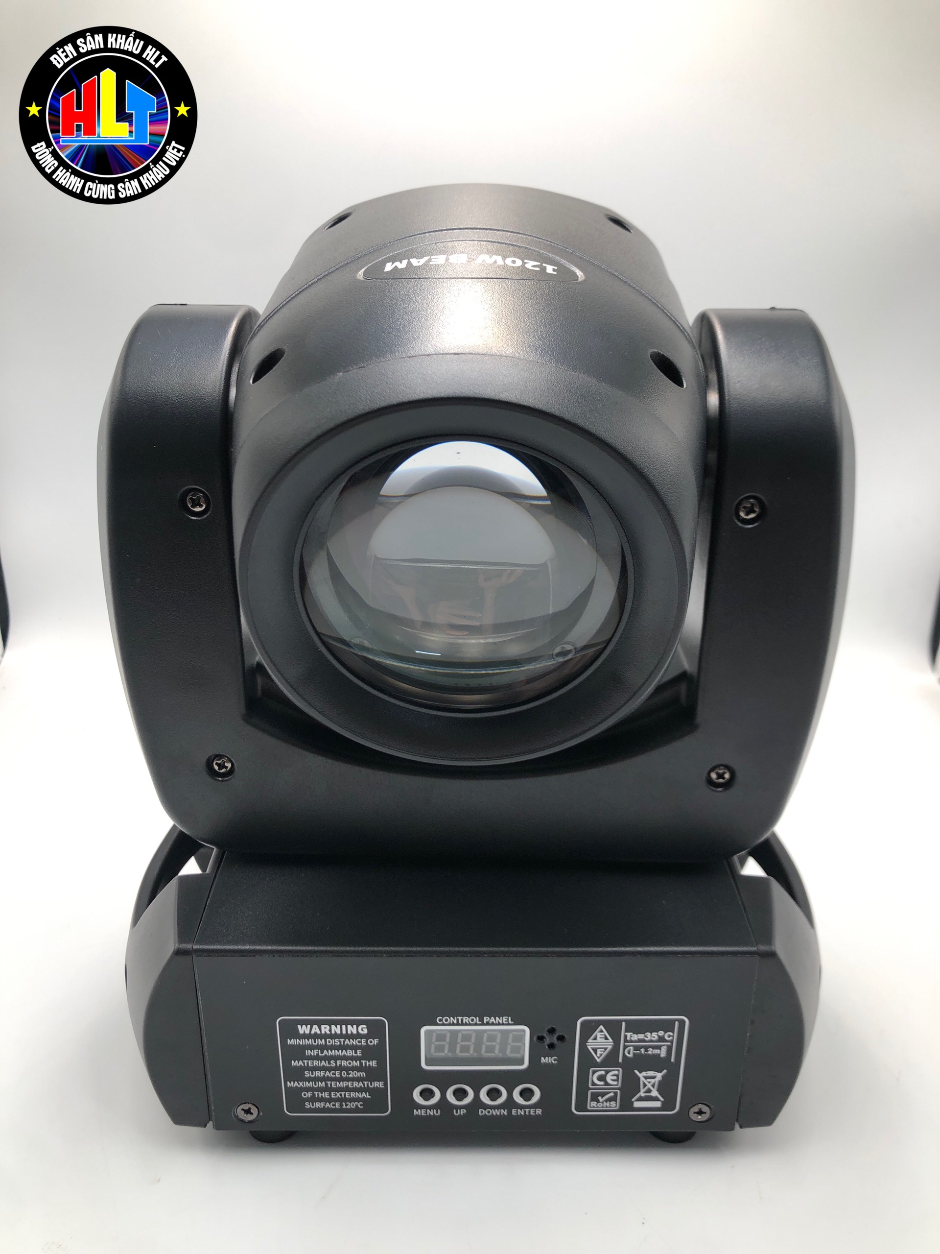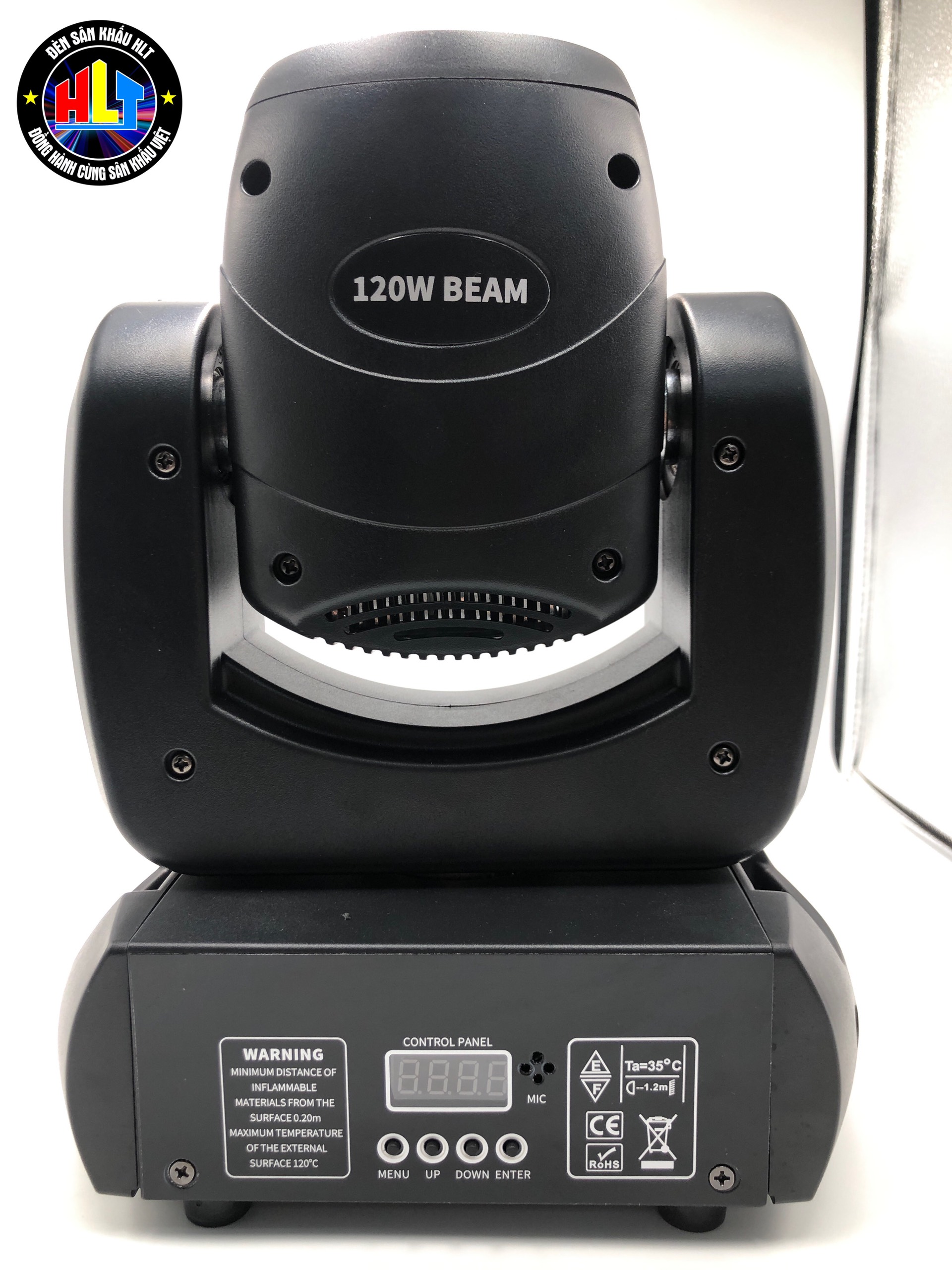 Đèn BEAM MOVING HEAD 120W sử dụng bóng 120w LED white siêu sáng, điều khiển qua DMX 18 kênh, 2 đĩa gobo (1 đĩa tĩnh và 1 đĩa có thể xoay), 1 đĩa màu với 7 màu. Chế độ tách nửa màu độc đáo. Chế độ nhân 3 gobo. Điều khiển dễ dàng qua màn hình LCD. Hệ thống tải nhiệt hiệu quả và chức năng tự động tắt khi đèn quá nóng hoặc chịu áp lực cao. Có thể sử dụng tốt ngoài trời, độ sáng cao.