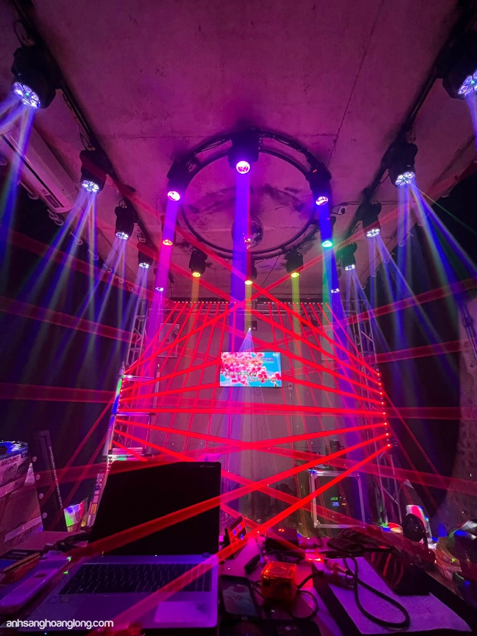 Đèn laser RGB: Ứng dụng công nghệ laser để tạo ra các hiệu ứng ánh sáng đa màu sắc; có thể tạo ra các hình ảnh động, vạch laser và các hiệu ứng ánh sáng khác.
