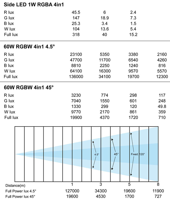 Nguồn sáng: 10x60W 4in1 RGBW LED + 120x1W RGBW 4in1 LED