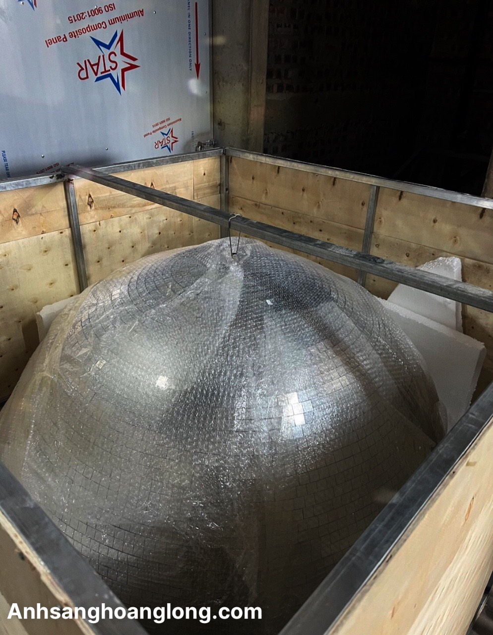Quả cầu gương quả trái châu đường kính 1200mm sẽ to như này, nên khách hàng lưu ý giúp em, đừng tưởng nó nhỏ bé, khi đóng kiện hàng xong nó sẽ để vừa 1 thùng xe 2,5 tấn ạ