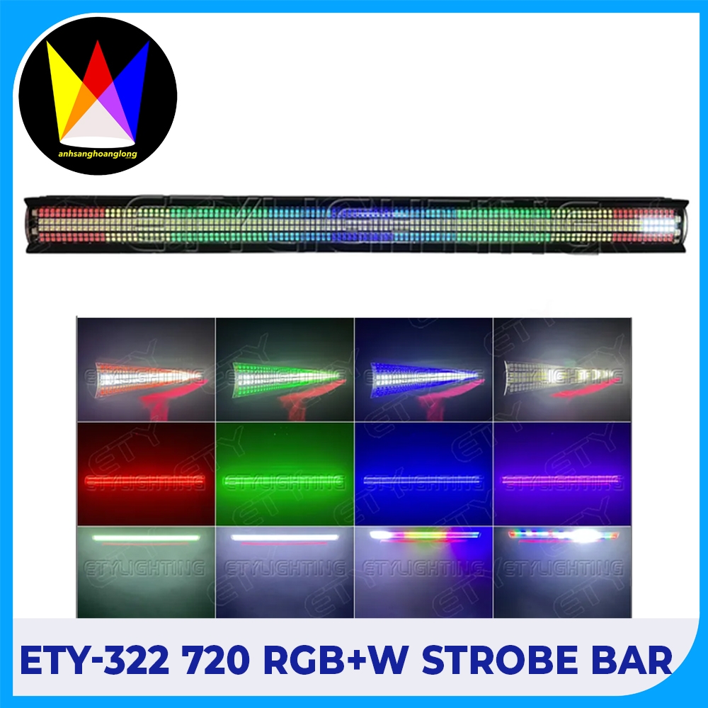 Đèn ETY 720 Strip Stobe có dải đèn LED SMD trắng mát 240 x 5 Watt ở giữa, được bao quanh ở cả hai bên bởi tổng cộng 480 x 0,3 W đèn LED SMD pha trộn màu RGB. Điều này cho phép cùng một thiết bị tạo ra hiệu ứng nhấp nháy màu trắng mạnh mẽ và hiệu ứng đuổi bắt nhiều màu.