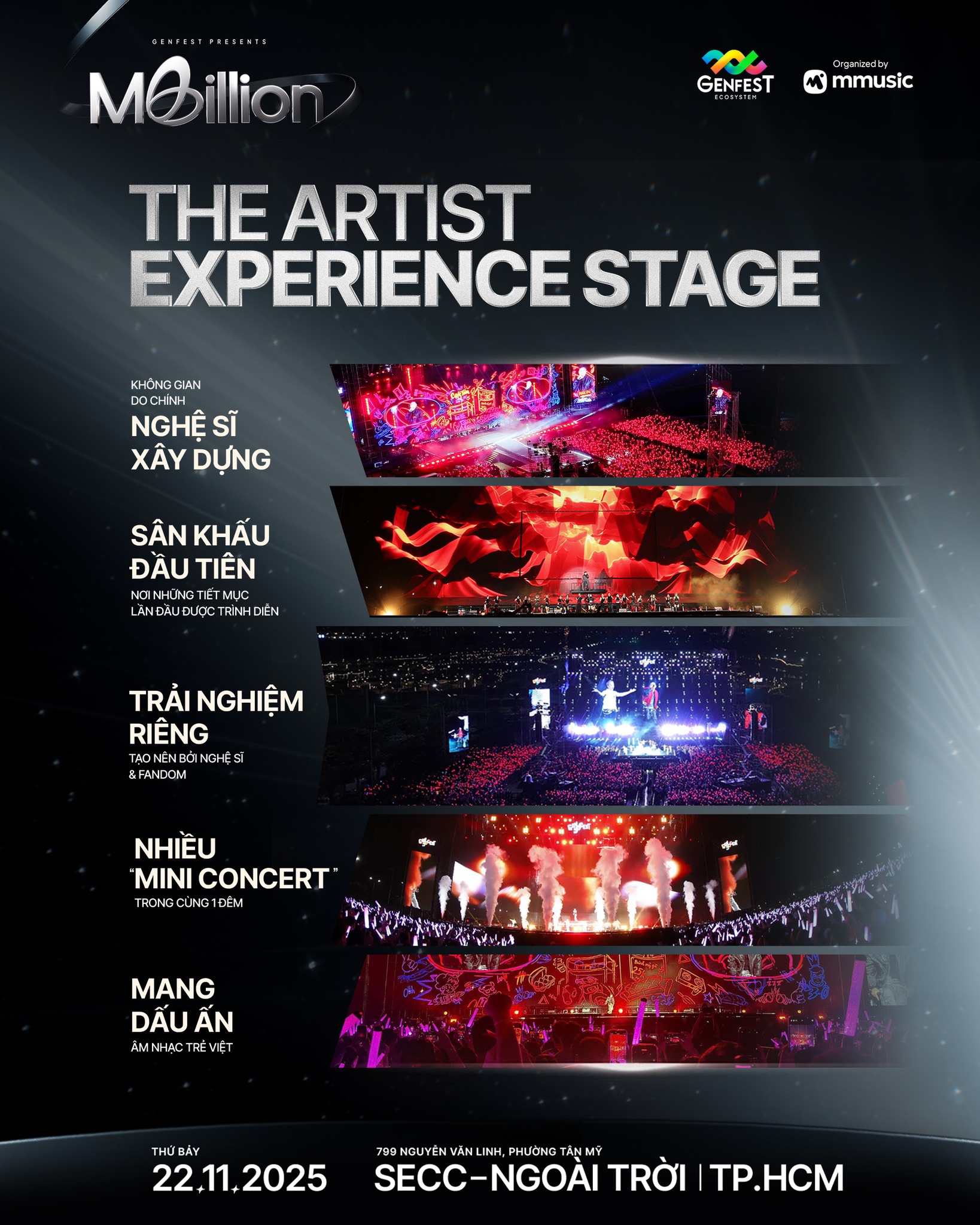 Dự án đầu tiên và quan trọng nhất trong chu kỳ hoạt động mới của GENfest Ecosystem đã chính thức được công bố, mang tên GENfest Presents MBILLION. Sự kiện ra mắt sẽ diễn ra vào ngày 22 tháng 11 năm 2025 tại không gian ngoài trời của SECC (TP.HCM), hứa hẹn sẽ định nghĩa lại hoàn toàn trải nghiệm concert tại Việt Nam.