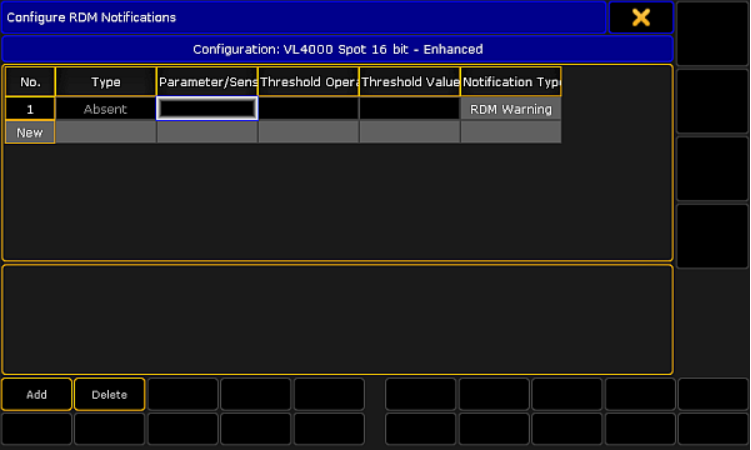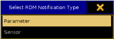 Nhấn vào Parameter hoặc Sensor, tùy thuộc vào loại bạn muốn thêm thông báo RDM.