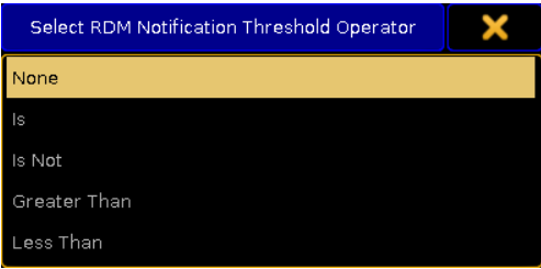Cửa sổ bật lên Chọn Toán Tử Ngưỡng Thông Báo RDM (Select RDM Notification Threshold Operator) sẽ mở ra.