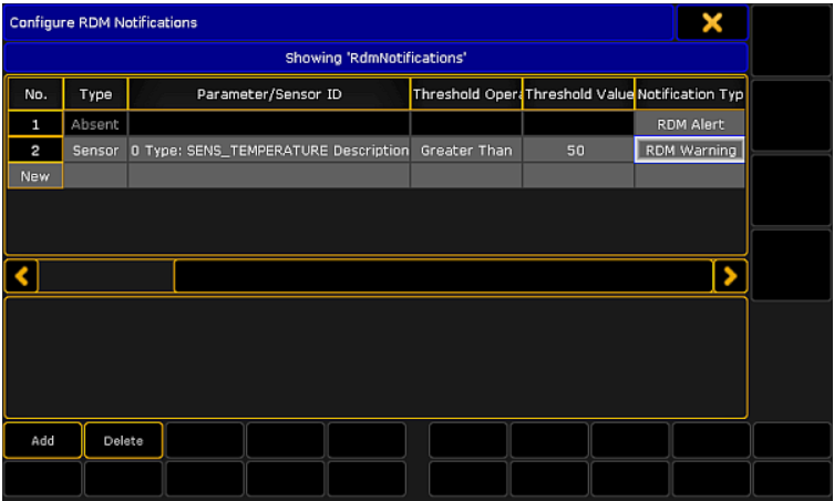 Nhấn vào Parameter hoặc Sensor mà bạn muốn thêm thông báo RDM.