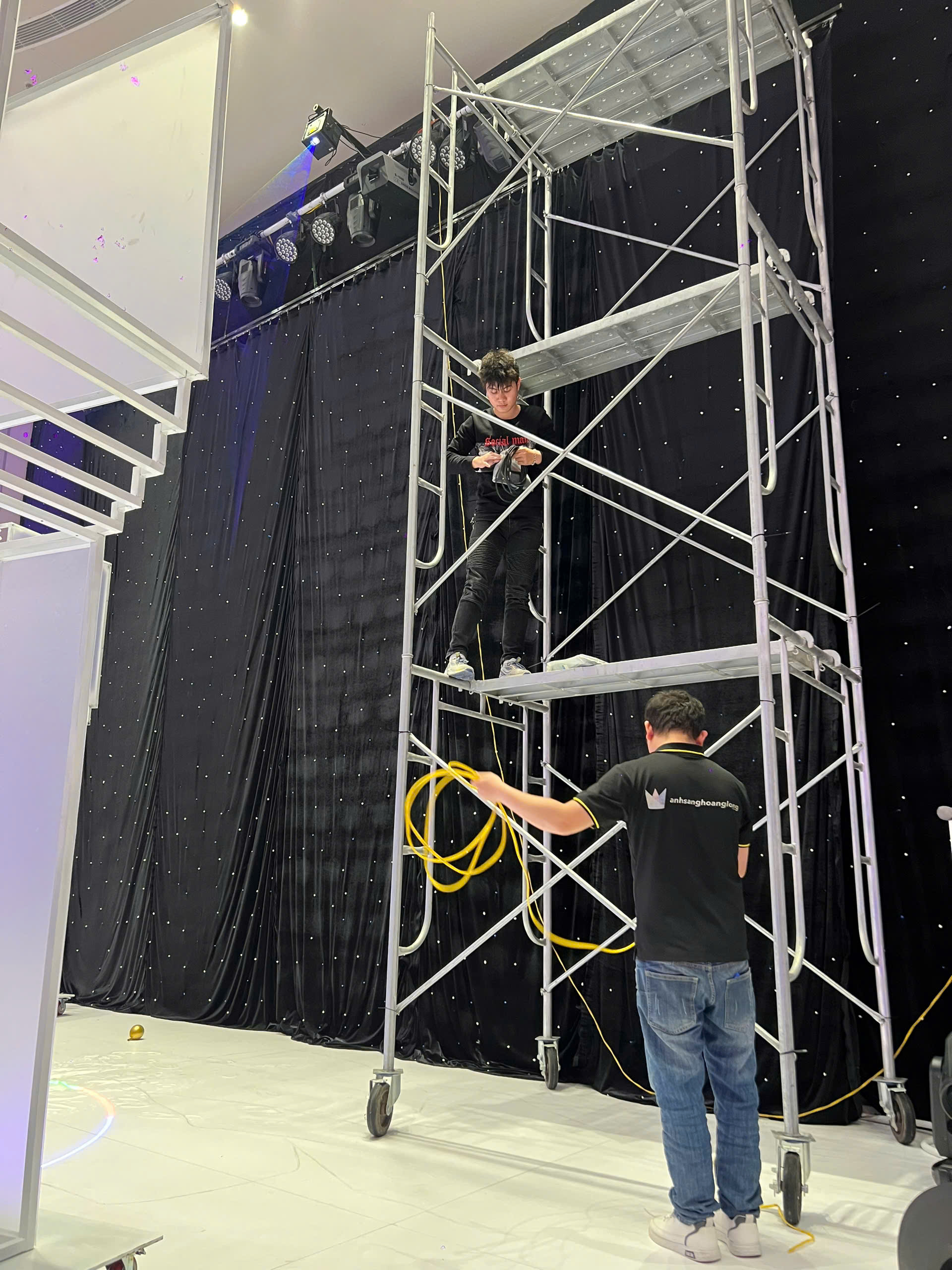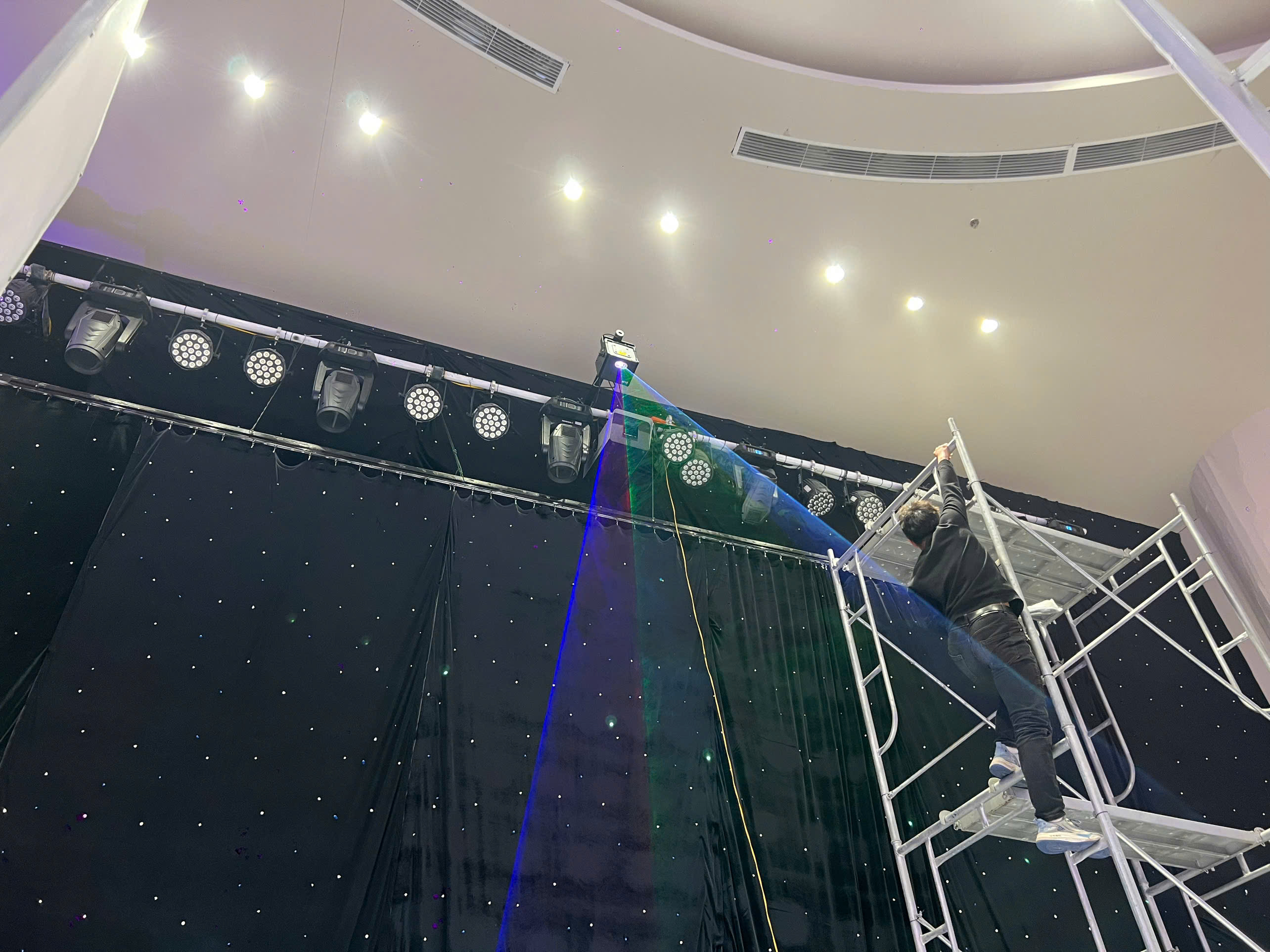 Một đám cưới lãng mạn và đáng nhớ không thể thiếu những hiệu ứng ánh sáng đặc biệt. Hiệu ứng tuyết rơi kết hợp với đèn laser chính là giải pháp hoàn hảo để biến không gian tiệc cưới thành một khung cảnh huyền ảo, lung linh như trong truyện cổ tích. Hôm nay, Ánh Sáng Hoàng Long đã hoàn thành lắp đặt hệ thống hiệu ứng đèn laser tuyết rơi tại Trống Đồng Long Biên, Hà Nội, mang đến một trải nghiệm vô cùng ấn tượng cho cô dâu, chú rể và khách mời.