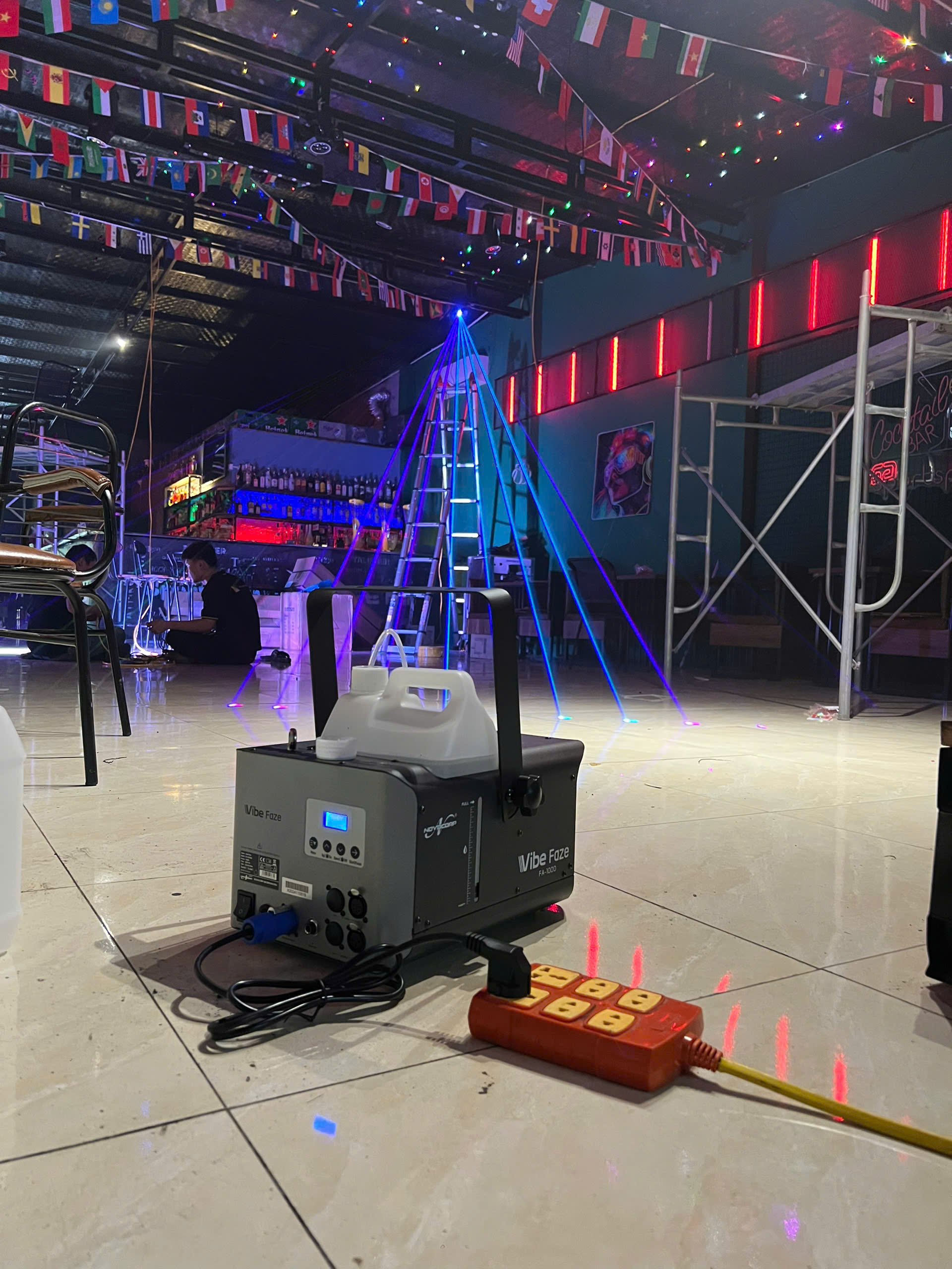 Một chút khói nhẹ từ Máy tạo khói Novacorp sẽ làm các luồng sáng trở nên mềm mại và huyền ảo hơn. Trong không gian chill, khói không cần dày đặc mà chỉ cần một lớp sương mỏng, đủ để tạo chiều sâu và cảm giác bồng bềnh, thư thái.