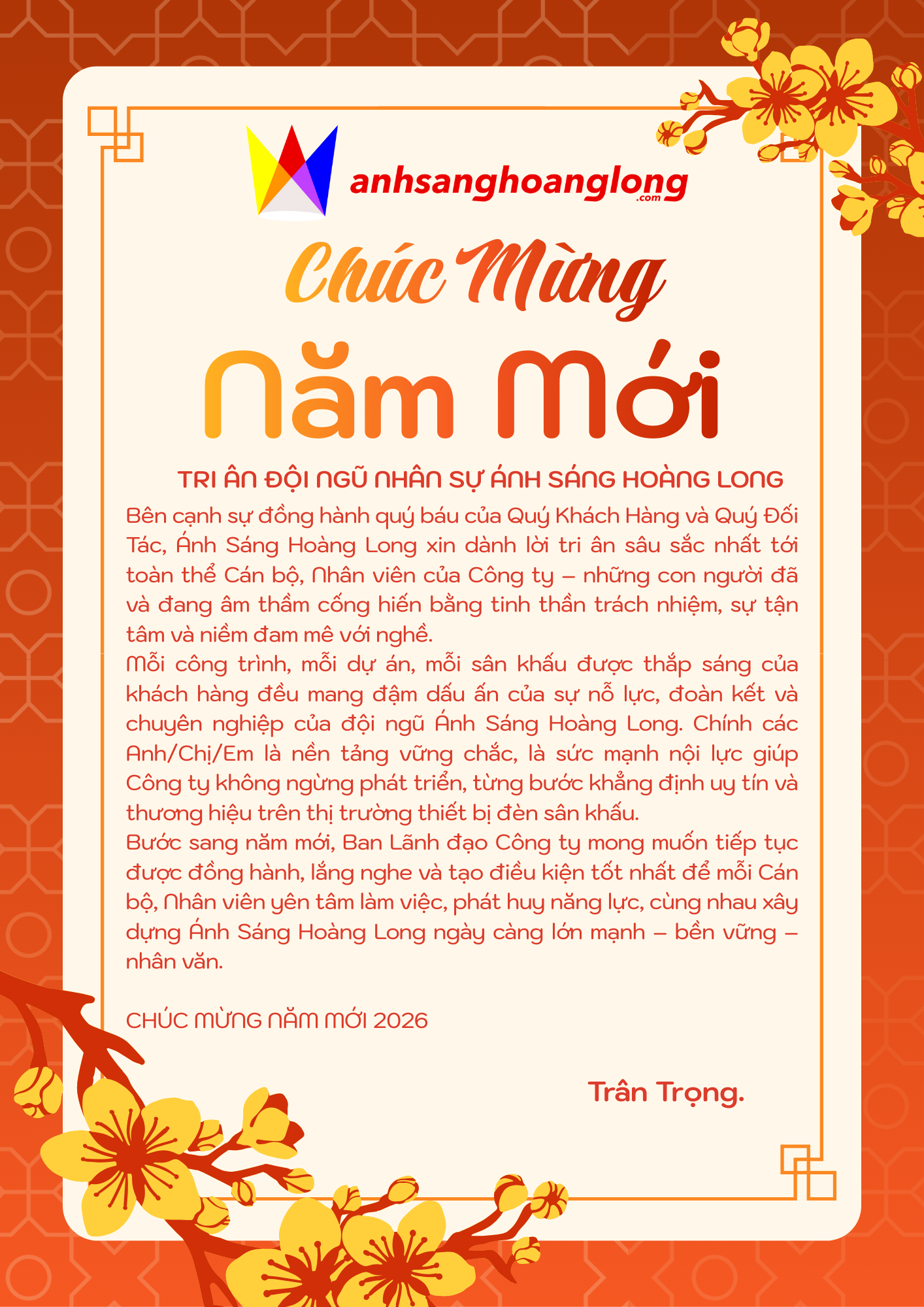 LỜI CHÚC TẾT NGUYÊN ĐÁN 2026 - CÔNG TY TNHH ĐÈN SÂN KHẤU ÁNH SÁNG HOÀNG LONG