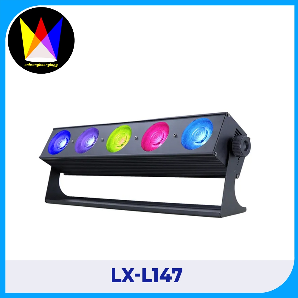 Ngoại hình và hiệu ứng ánh sáng: LX-L147 Nguồn sáng là 5 hạt đèn LED COB-RGB 3IN1 45W, có kiểu dáng thời trang và hệ thống quang học hiệu quả. Hệ thống quang học tiên tiến đảm bảo hiệu ứng nhuộm và chùm tia rõ ràng, phạm vi rộng.