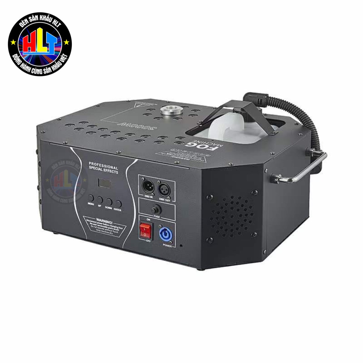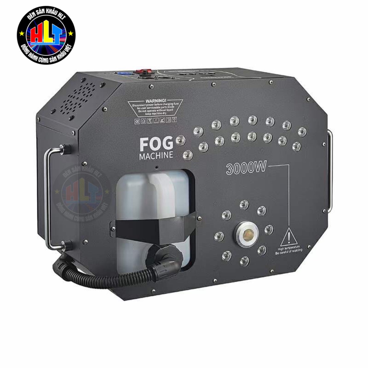 Máy khói 3000W Đứng là dòng máy khói có công suất buồng đốt lớn nhất trên thị trường hiện nay, sản phẩm cho thời gian làm nóng nhanh và lưu lượng phun khói lên đến 12000 Cu.ft/phút nhờ vào máy bơm cực mạnh bên trong. Lượng khói phun ra từ máy có thể xa tới 7met, nhờ đó máy khói này được dùng rất nhiều cho các sân khấu lớn chuyên nghiệp, hay sử dụng trong các ngành công nghiệp phụ chợ , thử kín ống gió , thử phòng cháy chữa cháy hay công nghiệp khử khuẩn , Máy phun khói 3000w đứng có thể sử dụng rộng trong nghành giải trí như , karaoke , bar , club