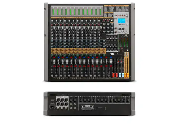 12 đầu vào MONO ¼” và XLR, 2 đầu vào âm thanh nổi; Chỉ báo cường độ tín hiệu đầu ra cho mỗi kênh đơn âm với màn hình LED; Built In PAD trên mỗi kênh; Có thể lựa chọn 48V; Parametric EQ; 3 đầu ra AUX; 2 Bộ xử lý hiệu ứng DSP tích hợp với Dynamics, Reverb, Delay, v.v. ; Nút MUTE với màn hình LED; Nút theo dõi với màn hình LED.
