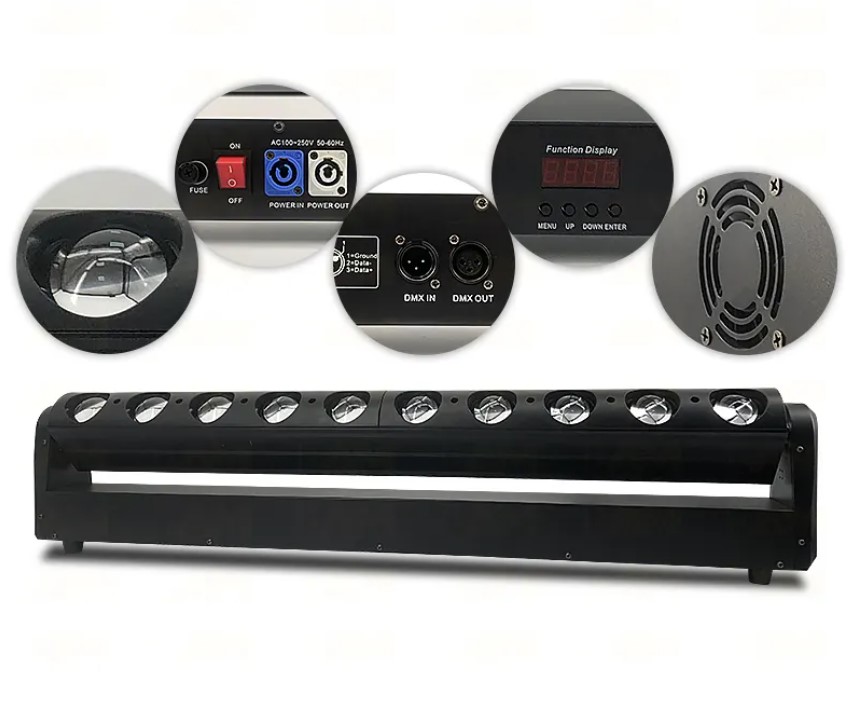 Đèn Katana - Moving Led 10x40W là một trong những dòng đèn sân khấu chuyên nghiệp đến từ thương hiệu Max Effect Lighting. Với thiết kế hiện đại, công suất mạnh mẽ và hiệu ứng ánh sáng sắc nét, sản phẩm này là sự lựa chọn lý tưởng cho các sân khấu biểu diễn, quán bar, club và sự kiện lớn.