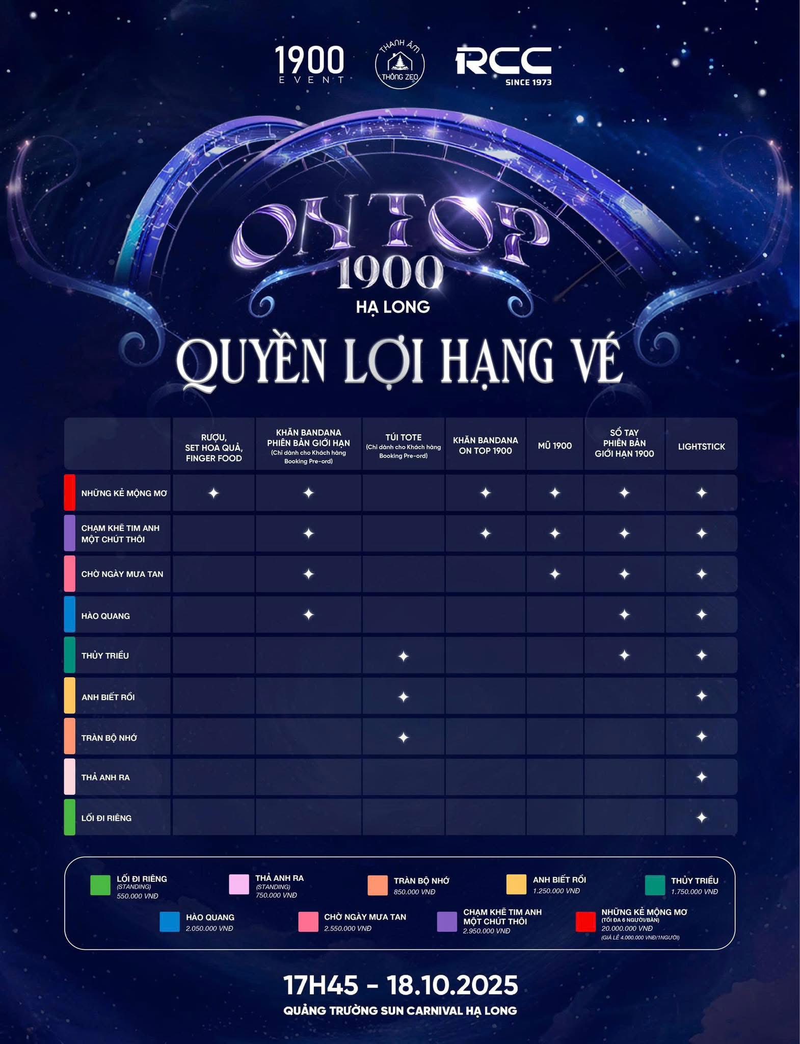 Thành phố Hạ Long sắp tới sẽ trở thành tâm điểm của làng nhạc Việt với sự xuất hiện của đại nhạc hội ONTOP 1900. Sự kiện do 1900 Event và Thanh Âm Thông Zeo tổ chức hứa hẹn sẽ mang đến một đêm diễn bùng nổ, quy tụ những tên tuổi hàng đầu và các ngôi sao đang lên của V-pop, diễn ra vào ngày 18 tháng 10 năm 2025 tại Quảng trường Sun Carnival.