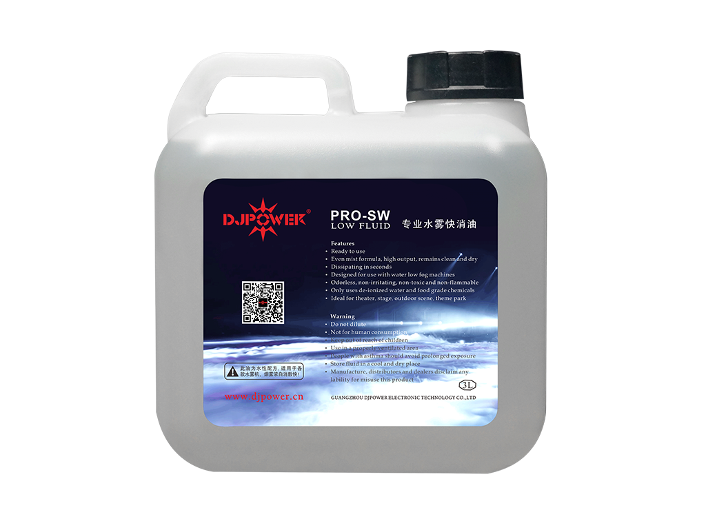 Dầu phun sương nước PRO-SW chất lượng cao được làm từ nguyên liệu nhập khẩu, thân thiện với môi trường và vô hại. Nó cải thiện đáng kể hiệu ứng trắng dày do máy phun sương nước tạo ra và tan nhanh chóng để ngăn khói dư ảnh hưởng đến hiệu ứng hình ảnh. Khói thấp hình thành ít có khả năng bốc lên. Tạo hiệu ứng biển sương mù và mây thấp.