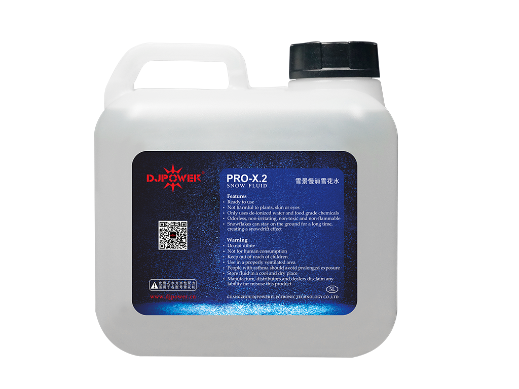 Dung dịch tạo tuyết hòa tan nhanh này được làm từ nguyên liệu thô thân thiện với môi trường và vô hại, có thể tạo ra những bông tuyết trắng mịn, đẹp mắt, khô, có đặc tính nổi tốt, không trơn trượt và có công thức hòa tan nhanh. PRO-X.2 có khả năng tạo ra tuyết có thể lưu lại trên mặt đất rất lâu, từ đó tạo ra hiệu ứng tuyết trôi thú vị. Thích hợp cho tất cả các loại máy tạo bông tuyết.