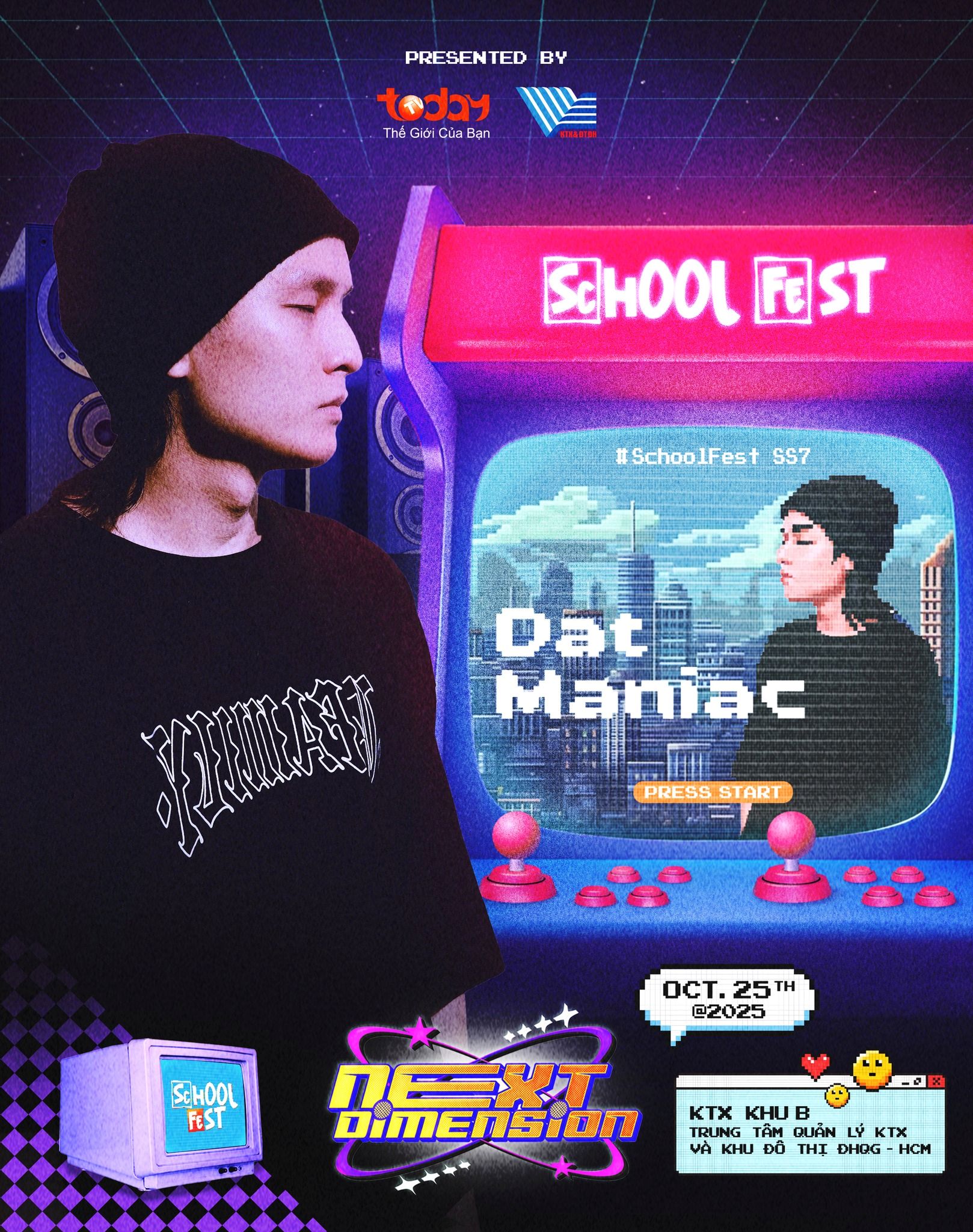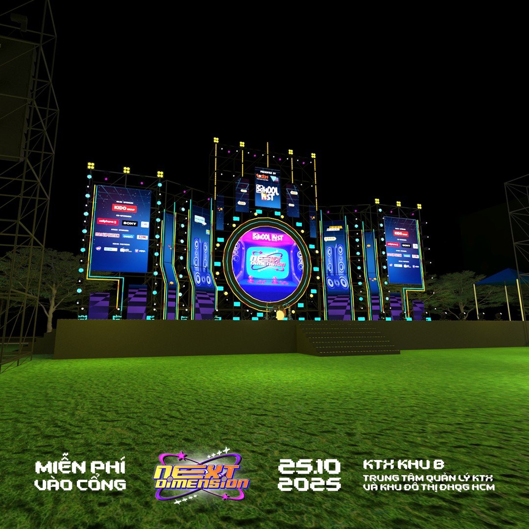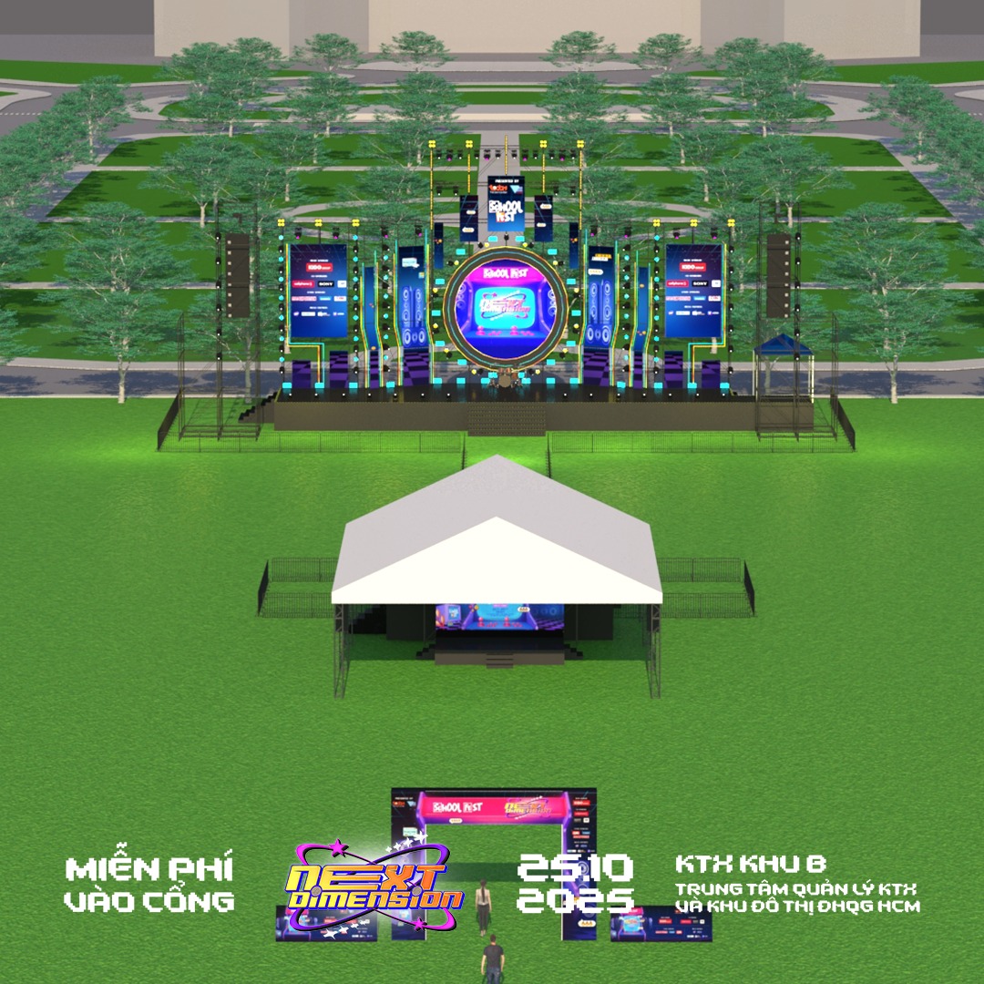 Một sự kiện "free" (miễn phí) thì sân khấu sẽ trông như thế nào? School Fest 7 trả lời bằng một concept "vượt ngoài giới hạn": Next Dimension. Vào ngày 25.10.2025 tới đây, toàn bộ không gian tại KTX Khu B (ĐHQG-HCM) sẽ được biến đổi thành một vũ trụ âm nhạc đa chiều, nơi trải nghiệm thị giác và thính giác được đẩy lên mức tối đa.