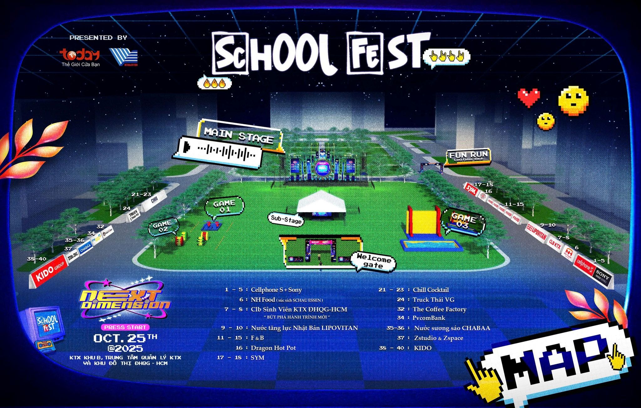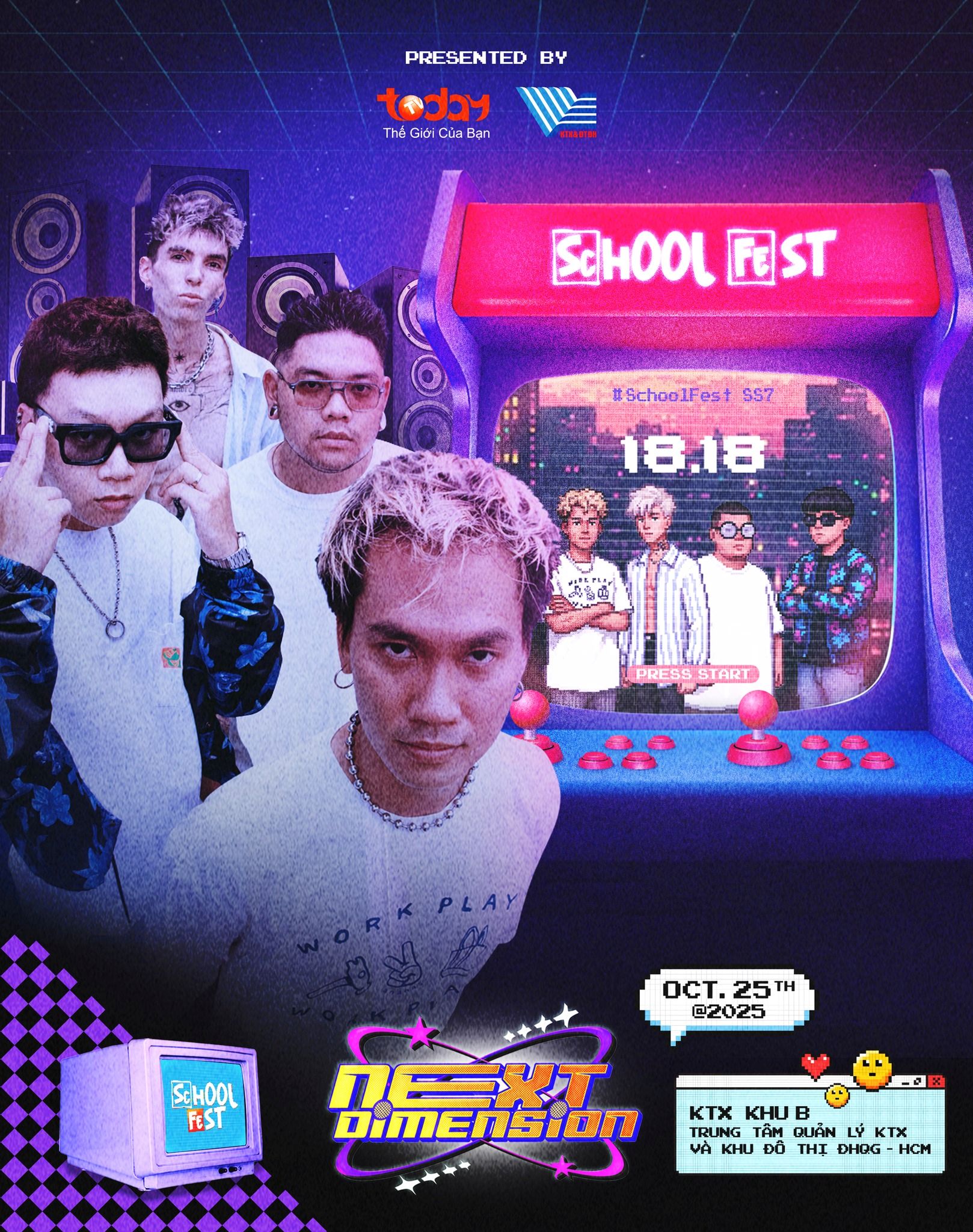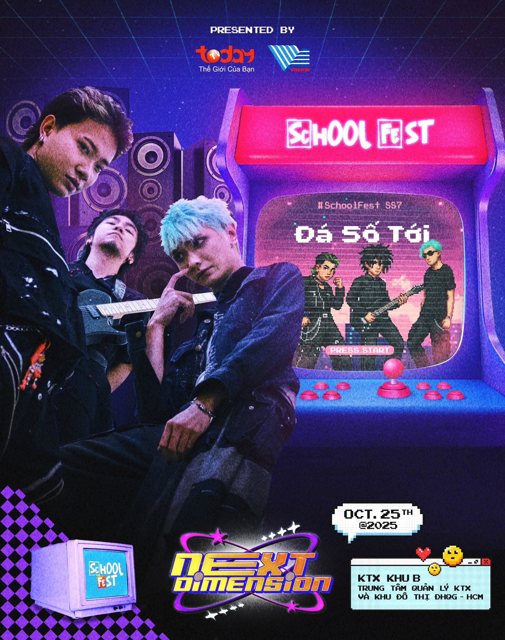 Một sự kiện "free" (miễn phí) thì sân khấu sẽ trông như thế nào? School Fest 7 trả lời bằng một concept "vượt ngoài giới hạn": Next Dimension. Vào ngày 25.10.2025 tới đây, toàn bộ không gian tại KTX Khu B (ĐHQG-HCM) sẽ được biến đổi thành một vũ trụ âm nhạc đa chiều, nơi trải nghiệm thị giác và thính giác được đẩy lên mức tối đa.