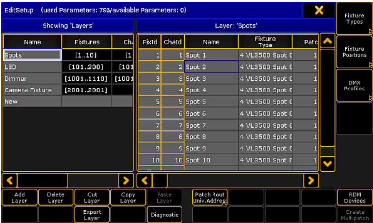 Nhấn Setup, sau đó chọn Show > Patch & Fixture Schedule.