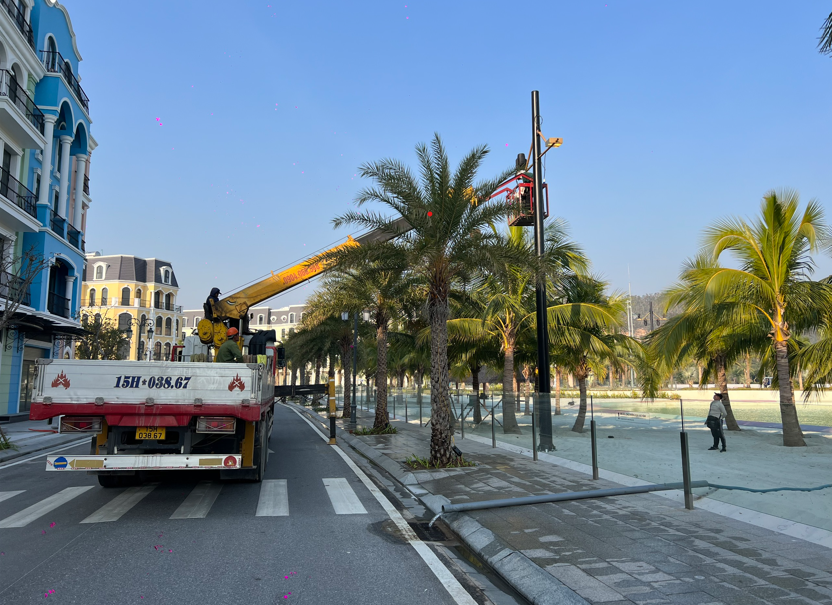 Lắp Đặt Thiết Bị: Toàn bộ 56 cây đèn Beam IP-650 được thi công theo tiêu chuẩn kỹ thuật cao, đảm bảo an toàn và hiệu quả hoạt động.