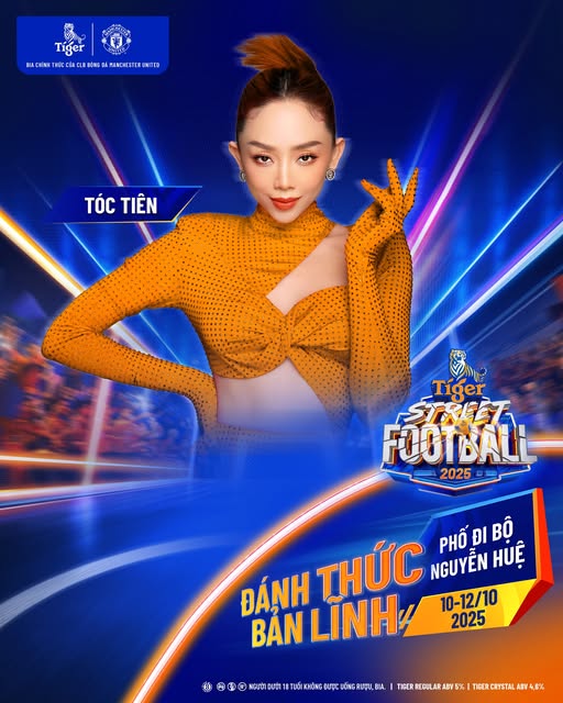 Song hành cùng những trận cầu kịch tính, đêm chung kết 12/10 sẽ là một đại tiệc âm nhạc hoành tráng với sự tham gia của dàn nghệ sĩ đang được yêu thích bậc nhất hiện nay. Sân khấu Tiger Street Football 2025 sẽ chào đón những màn trình diễn đỉnh cao từ các ca sĩ Tóc Tiên, Dương Domic, Double2T.