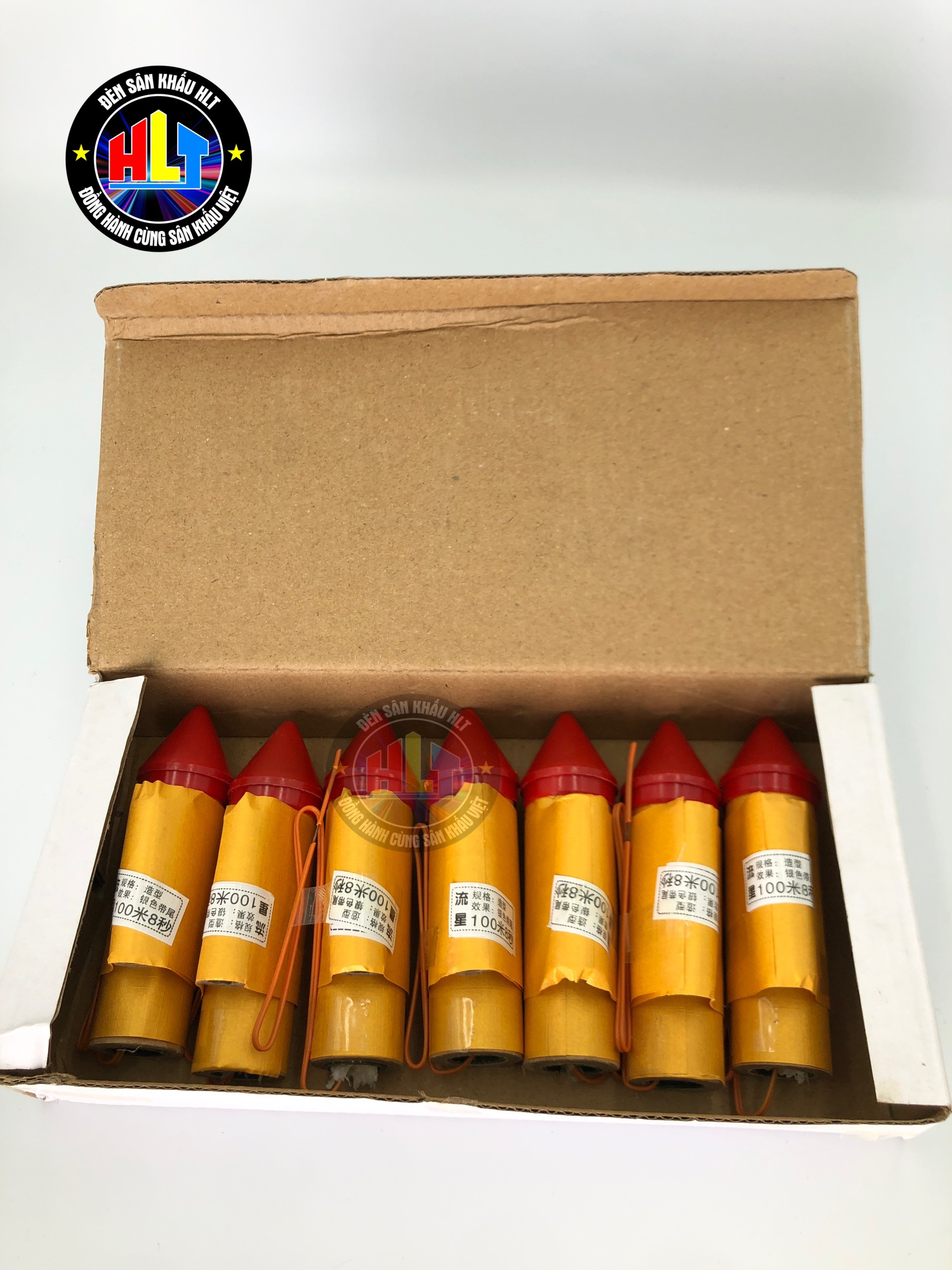 PHÁO HỎA TIẾN , HAY CÒN GỌI LÀ PHÁO CHUỘT Là một loại pháo điện sân khấu khá hấp dẫn không chỉ ở tạo hình mà còn ở tiếng động phát ra khi kích điện. Pháo chuột, pháo sáng tên lửa rất được ưa chuộng dùng cho các sự kiện lớn. Cách sử dụng là dùng điện kích tạo ra lực đẩy như tên lửa đẩy quả pháo chạy theo 1 sợi dây cố định và quãng đường chạy của pháo có thể lên đến 100m.
