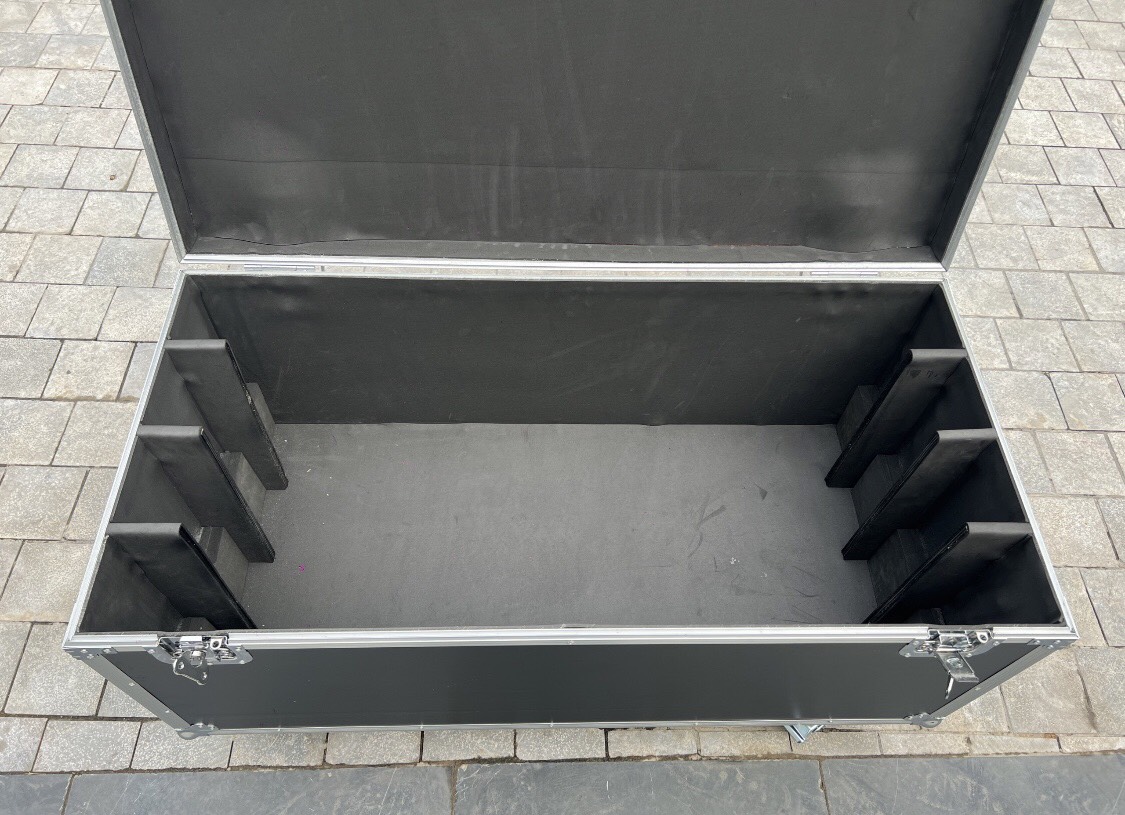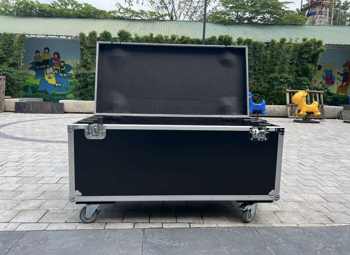 Tủ được làm từ gỗ cứng, sơn chống thấm nước bên ngoài; Khung sườn được ốp nhôm chắc chắn, vừa vặn; Các góc được bo bằng sắt mạ crom sáng bóng, cứng; Bên trong là các ô ngăn cách để vừa đèn theo khách hàng yêu cầu, bọc da tránh va đập; Bánh xe cao su non, 2 bánh có khóa giúp di chuyển hay cố định dễ dàng; Trang bị khóa hình cánh bướm tiện dụng, an toàn;