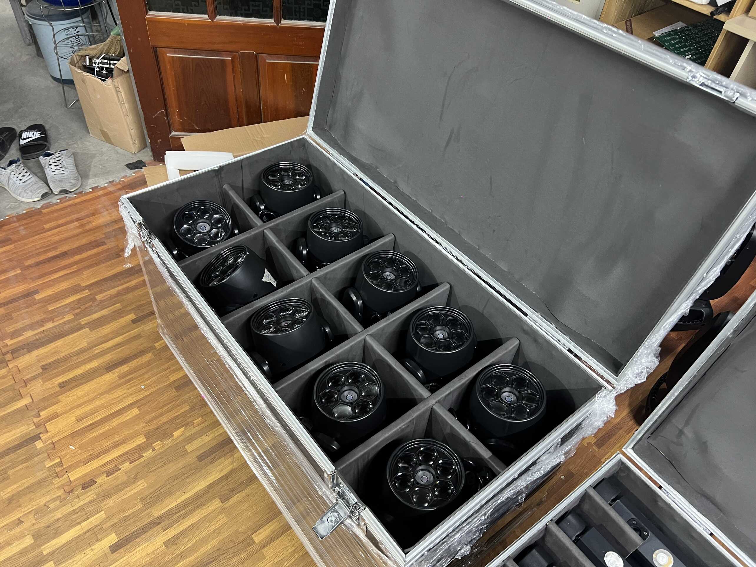 Ảnh sản phẩm tủ gỗ đựng đèn moving 6 mắt có laser, có thể đựng các ròng đèn như sau; đựng đèn beam 120w led, đựng đèn moving 60w , đựng đèn moving 150w, kích thước của chúng có thể khác nhau tuy nhiên với ngăn tủ đóng đủ độ để có thể đựng tích hợp các mẫu đèn mini vào đây.