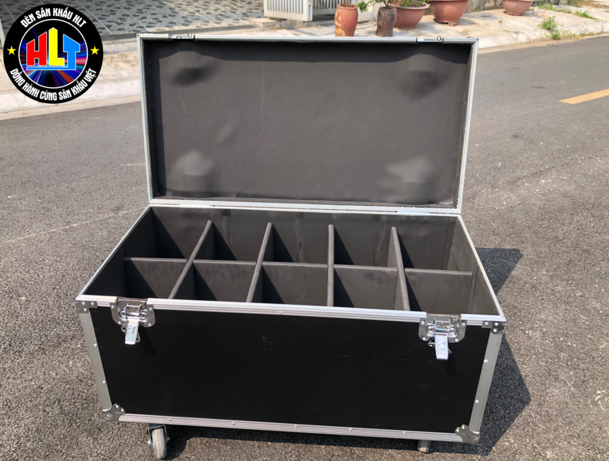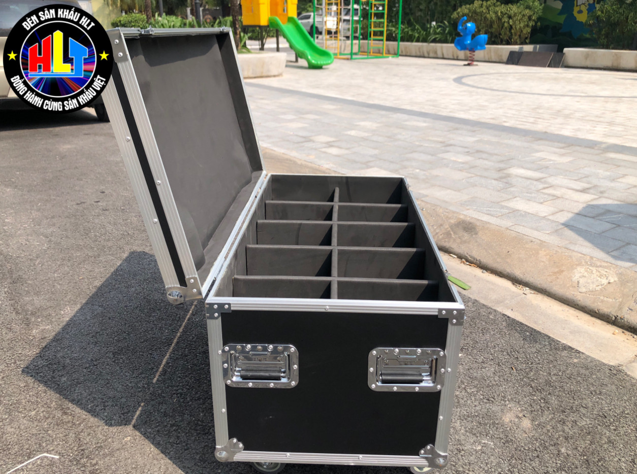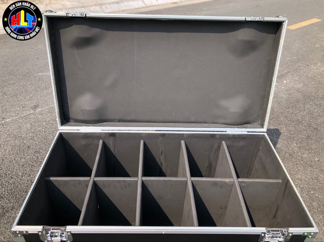- Bên trong là 10 ô ngăn cách để vừa 10 đèn Moving 6 mắt , bọc da tránh va đập;