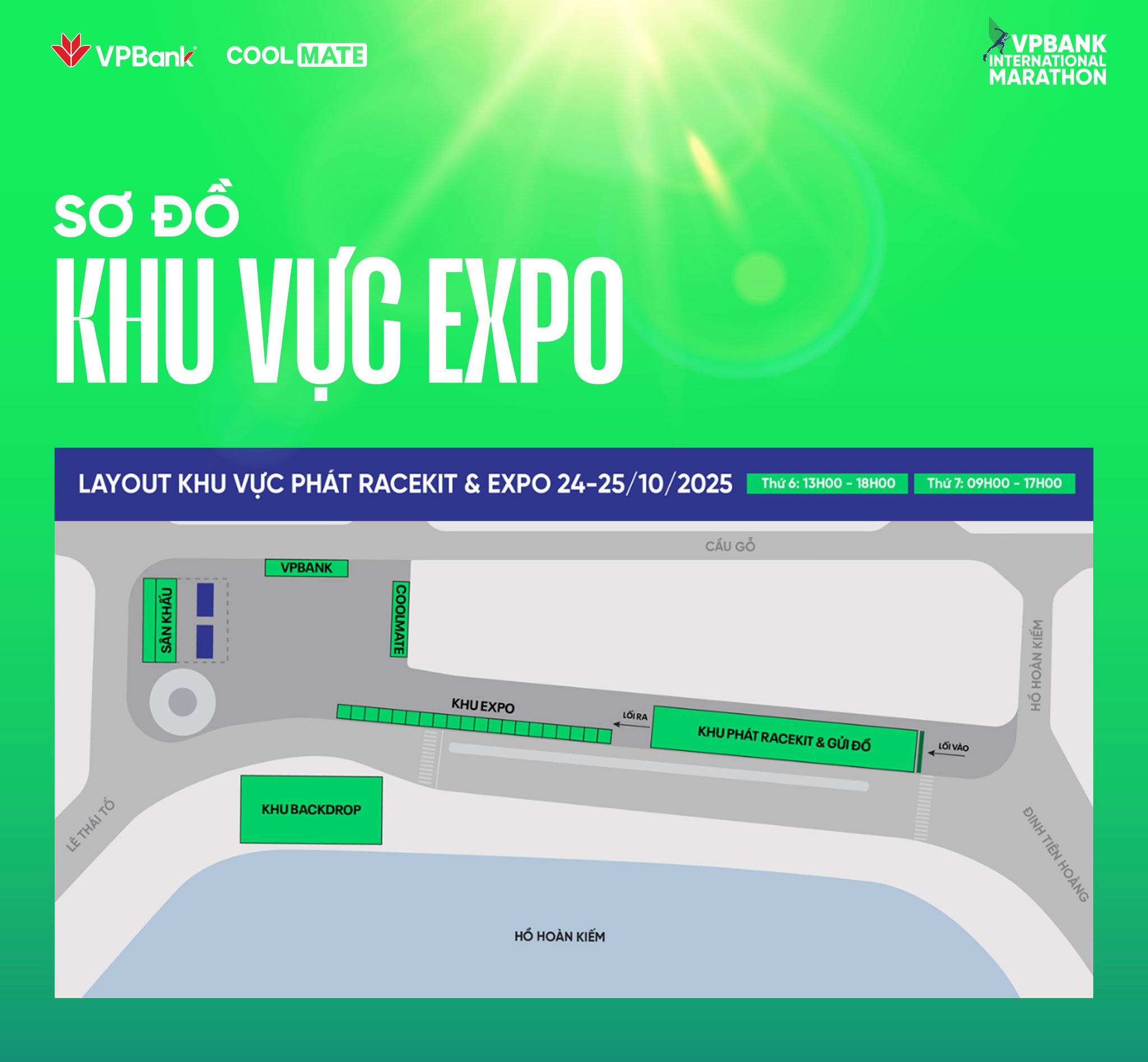 Để phục vụ cho giải chạy, khu vực Expo tại đường Đinh Tiên Hoàng cũng đã mở cửa từ 13:00 trưa nay (24/10). Các vận động viên có thể kết hợp đến nhận racekit (bao gồm BIB) và trải nghiệm các gian hàng, khu check-in ấn tượng trước khi "quẩy" cùng đêm nhạc vào buổi tối.