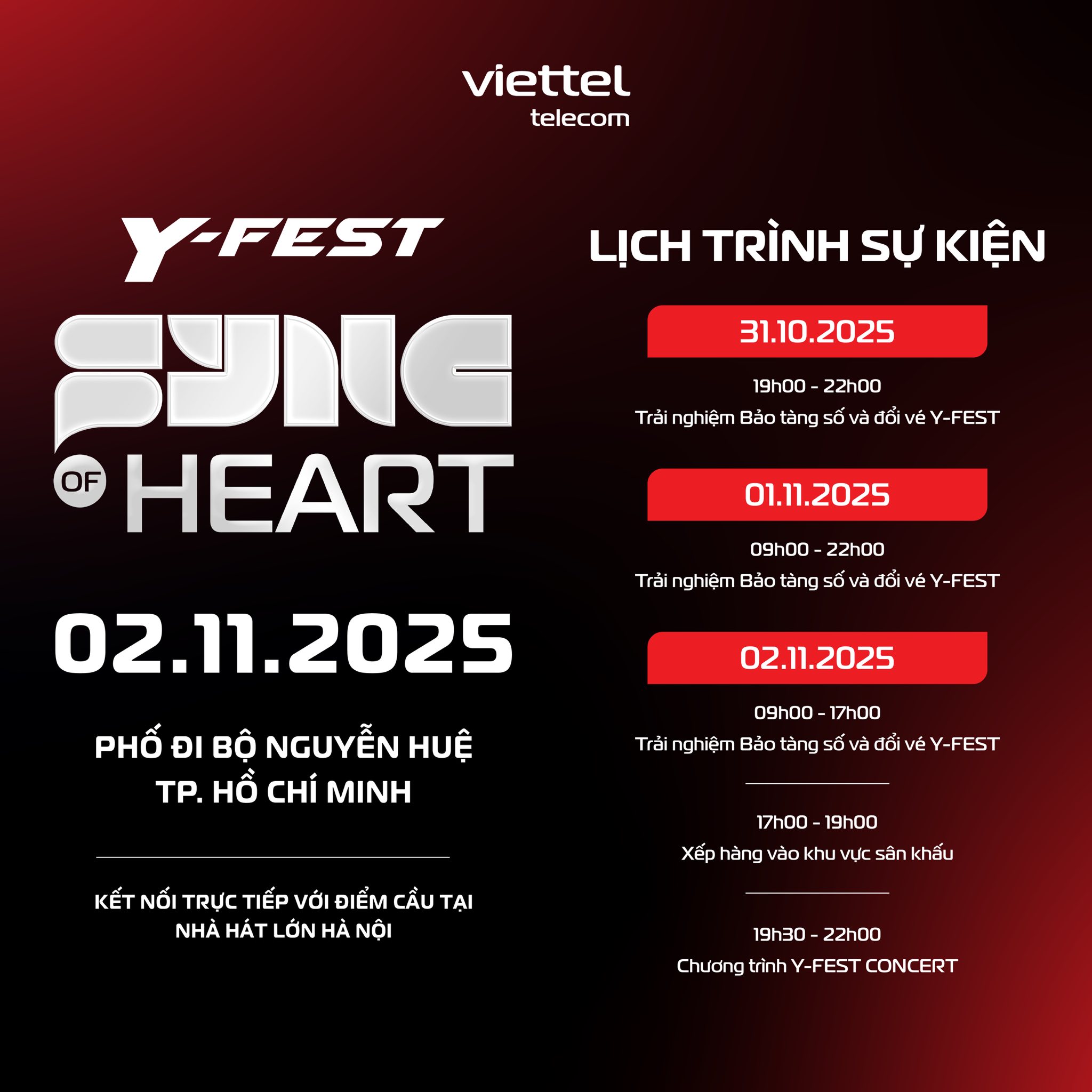 Y-FEST, thương hiệu lễ hội âm nhạc đỉnh cao từ Viettel, không chỉ là một đêm diễn thông thường. Năm 2025, sự kiện mang đến chủ đề "SYNC OF HEART" (Đồng Điệu Trái Tim), một không gian nơi nghệ thuật đương đại giao thoa cùng công nghệ số tiên phong. Khán giả Sài Gòn không chỉ đến để ngắm nhìn, mà còn trở thành một phần của tác phẩm, được chạm vào cảm xúc, khơi dậy bản sắc và bật tung tinh thần sáng tạo.